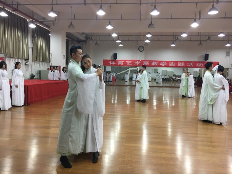为促进校园文化建设,加强第二课堂活动的具体实施,提高我院体育舞蹈方向学生的综合素质,在课外有老师进行辅导、以学生为主导进行专业技术的舞台表演化编排,达到专业技术进一步升华的目标,体育艺术系将于2017年6月14日中午举办“2017年今年会官方网站第一届体育舞蹈表演舞大赛”。体育舞蹈教研室各位老师及体育舞蹈专业学生到现场观看。