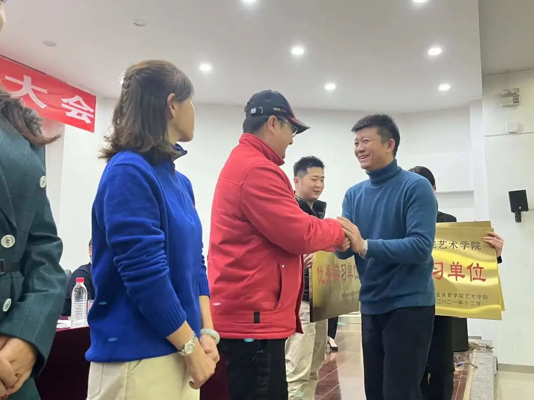艺术学院院长杨占军、艺术学院副院长刘强、艺术学院党委组织员缑荣涛、艺术学院党政办公室主任宋姌、艺术学院学工办主任、团委书记黄宏叶、艺术学院学工办主任、团委副书记刘薇、艺术学院舞蹈教研室书记书记李晓梅、艺术理论教研室主任赵青、艺术理论教研室书记尤勇、2022届实习指导老师、艺术学院各级辅导员以及来自陕西的5家获奖学校、企业人单位代表出席了本次大会,艺术学院学工办主任团委书记黄宏叶主持本次会议。