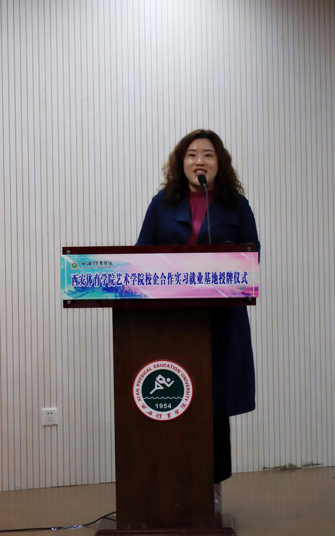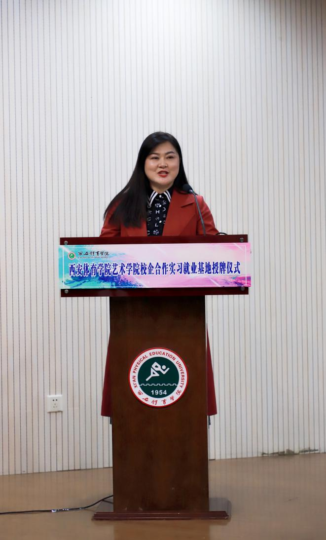 周至第四中学校长祁雯清与陕西峰雅艺术教育创始人、董事长乔雅作为实习就业基地代表与到会师生、同业代表分享了自己工作经历、企业模式、就业理念,对艺术学院建立校企合作表示认同,还就本单位情况与人才需求做了进一步说明,最后她们表示对艺术学院学生能力高度认可,并就实习就业基地未来前景充满了信心。