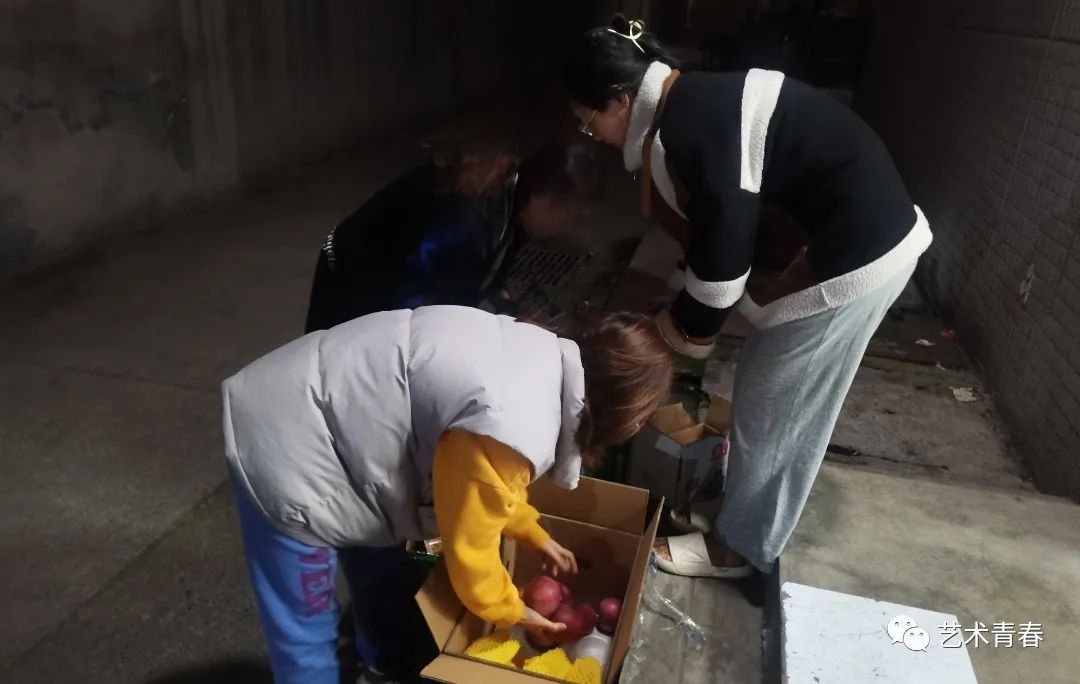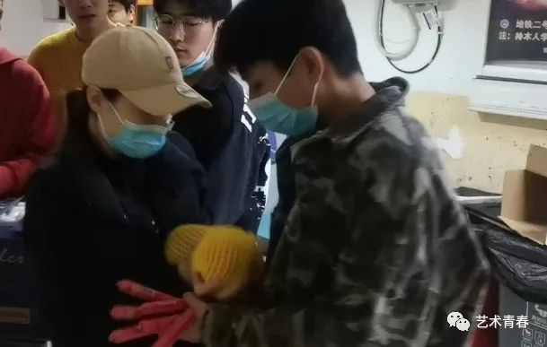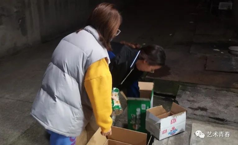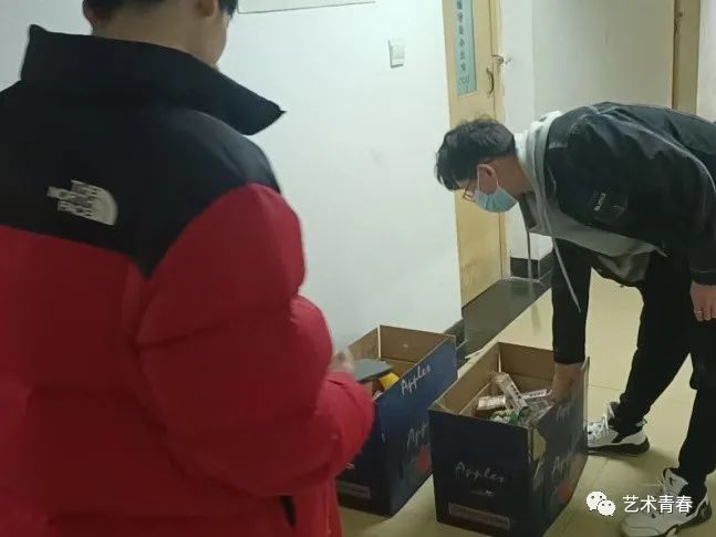 发放过程中,艺术学院学生会干部有序地从旧网球馆搬运物资到各宿舍楼下,由各年级辅导员及各宿舍楼长依次进行爱心食品的发放,领取过程中做到不扎堆,不聚集、有序排队。