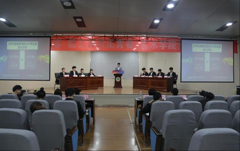在庆祝中国共青团成立一百周年之时,喜迎党的二十大胜利召开与建党101周年之际,为锻炼和培养我院大学生的思维能力、语言表达能力和团队协作精神,引导广大青年学生厚植爱党、爱国、爱社会主义的情感,展现新一代青年蓬勃向上的精神风貌。经过前期激烈的三场预赛,艺术学院团委于2022年6月30日在新教学楼一楼报告厅举办“建团百年当励志,能言善辩正青春”辩论赛。