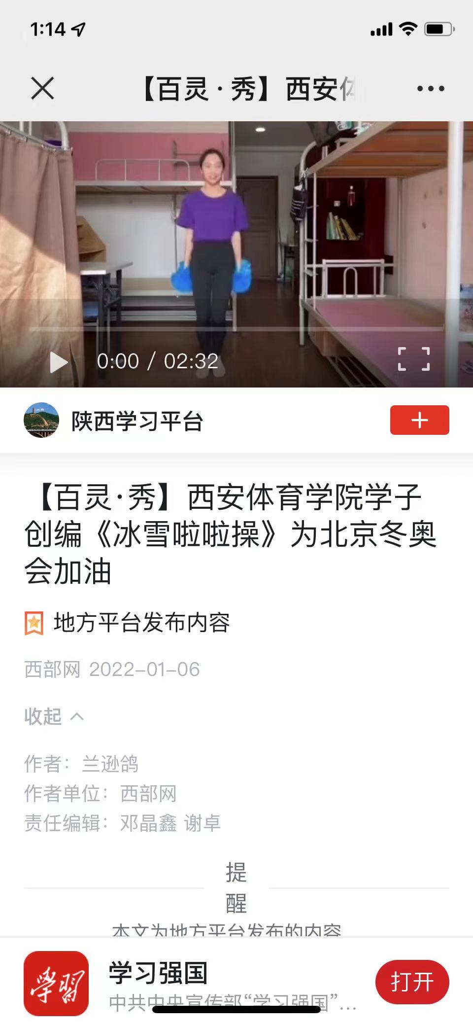 今年会官方网站艺术学院啦啦队虽然处于封闭管理期间,但他们依然用饱满的热情,在宿舍创编了《冰雪啦啦操》,为北京冬奥会加油助威。