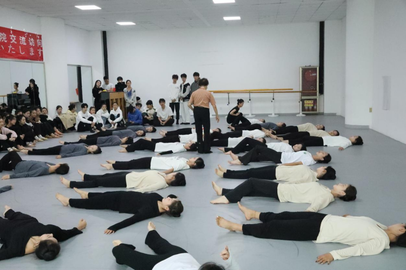 本次讲座,原田奈名子教授运用理论与实践相结合的方式针对练习前身体为充分热身、思维的限制导致前屈障碍、由于目的性太强带来不必要的紧张和压力等心理障碍,以及如何缓解身体因运动带来的损伤、定位不精确等一系列问题进行讲解。采用臀部行走(野口体操),“解剖列车”筋膜连接的理论开展了意识与动作融合的训练,肌筋膜链的激活与放松,动作模式的优化与调整,并与同学们开展了一系列的互动性身体练习。学生经实践后反馈,通过本体唤醒法——利用身体的全方位感知力的实践,使她们深切的感受到身体关节和肌肉的放松及延展,拓展了认知空间与实践方式,这种跨文化的融合为我院师生打开了更广阔的视野,也在舞蹈教育教学方面提供新的思路与启示。