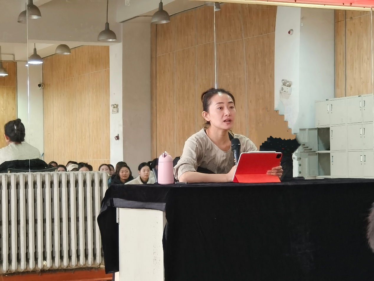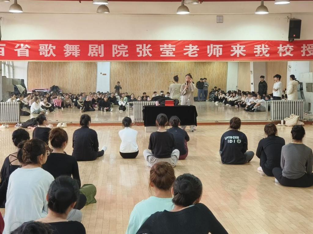 为进一步建设“舞蹈学”一流专业,持续提高教学质量,秉承我校“百日奋战”工作部署,艺术学院舞蹈教研室于2023年12月6日特邀陕西省歌舞剧院首席演员张莹老师,在我院艺术馆203教室开展题为“从个人舞蹈实践分享演、教、编三者之间的联系”讲座。这次讲座老师分享了自身的留学经历和舞蹈学习经历,开拓了同学们的眼界,激发学生的创新思维,为学生提供了非常有价值的职业规划,引发同学们的思考。通过此次活动,学生们可以汲取到更多来自校外优秀老师的教学经验,提升自己的舞蹈技能,提高身体协调性各表演的自信心,培养艺术修养。这些能力的提升将有助于同学们在未来的生活和事业中更好地应对各种挑战和机遇。