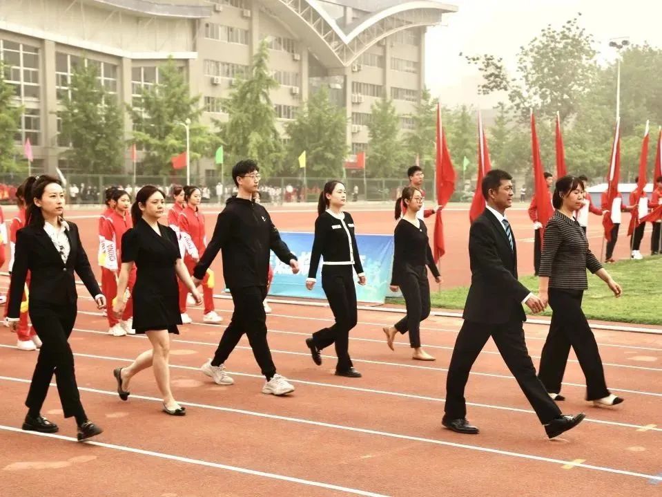 艺术学院学工办老师以及学生会干部在运动会开幕式前期的准备工作中,付出了大量的精力和时间。同时对学生们的方阵步伐、队形以及动作进行多方面指导,使方阵队伍更加整齐有序。