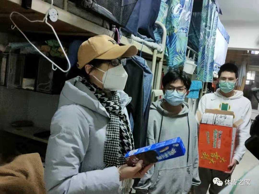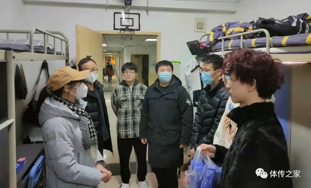 2021年12月31日晚,体育新闻与传媒学院党委书记杨亚玲与辅导员郭维刚、邱莹、文玥、辛奇深入学生公寓走访慰问,杨亚玲书记向同学们送去了慰问礼品,希望同学们团结一心,共克时艰,在新的一年里,身体健康,学业进步!
