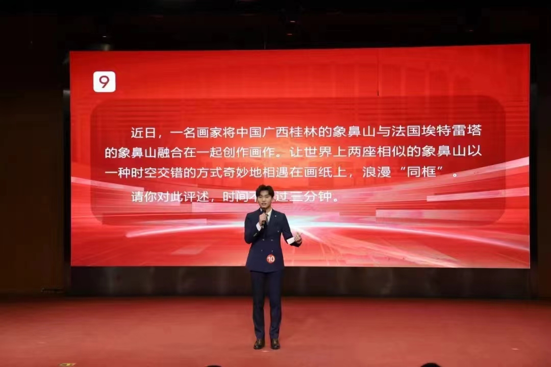 5月31日的决赛中,陈嘉豪、孙郁欣两位同学展现出非常鲜明的个人风格。在即兴评述环节,选取独特的视角,条理分明的阐述观点。在辩论环节,面对现场抽题直接辩论的残酷赛制,做到紧抓重点、逻辑清晰,展现出我院学生良好的思辨力。在情景演绎环节,孙郁欣立足大赛主题,把武术与中国传统文化相结合,用有声语言生动诠释了武术精神和家国情怀;陈嘉豪通过话剧的形式演绎了对革命先辈陈延年崇高的敬意与深深的怀念。最终,孙郁欣以全场第二名92.83分获得二等奖、陈嘉豪同学以91.50分获得三等奖。