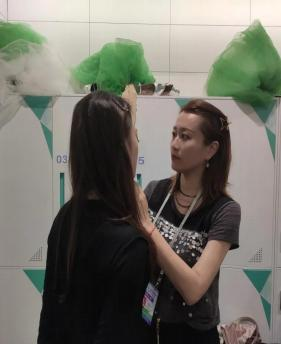 (李晓梅老师和王格菡老师与体育展示颁奖处其他老师赛后合影)