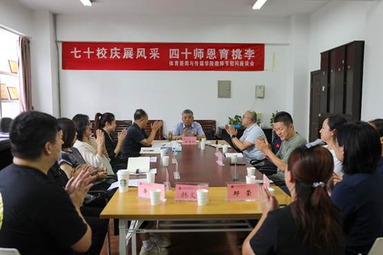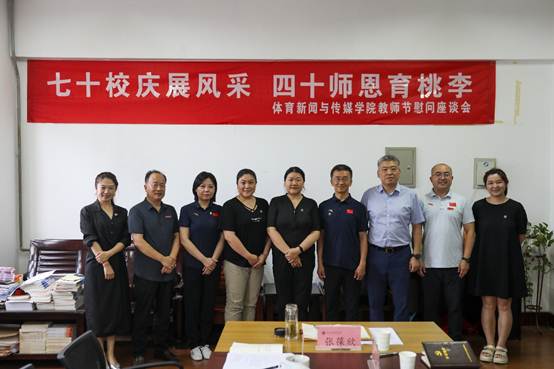 在学校即将迎来七十周年校庆之际,又恰逢第四十个教师节来临,9月3日下午,体育新闻与传媒学院于举办了教师节慰问座谈会,学院领导班子参加座谈。副校长张葆欣亲临现场,慰问学院的老师们,并与大家围坐在一起,共同交流,展望未来。