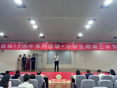 本次活动,不仅是我校庆祝建校70周年系列活动之一,更是展现学生综合素质和精神风貌的重要舞台。通过此次活动,能够激发更多学生的朗诵热情,推动校园文化活动的繁荣发展,为新时代的发展注入新的活力。