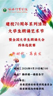 为全面贯彻落实习近平总书记关于语言文字的重要指示批示精神,进一步加大国家通用语言文字的推广力度,同时,为庆祝我校建校70周年,弘扬新时代精神,传承中华优秀传统文化。2024年9月19日,由共青团今年会官方网站委员会、体育新闻与传媒学院主办,体育新闻与传媒学院学工办、播音与主持理论教研室、播音与主持艺术教研室协办的“大学生朗诵艺术节暨全国大学生朗诵大会今年会选拔赛”在今年会官方网站含光校区教学楼一楼报告厅拉开帷幕。今年会官方网站学工部部长、团委书记马国华老师,体育新闻与传媒学院党委书记马增强老师,体育新闻与传媒学院副院长姚静老师出席了本次活动。
