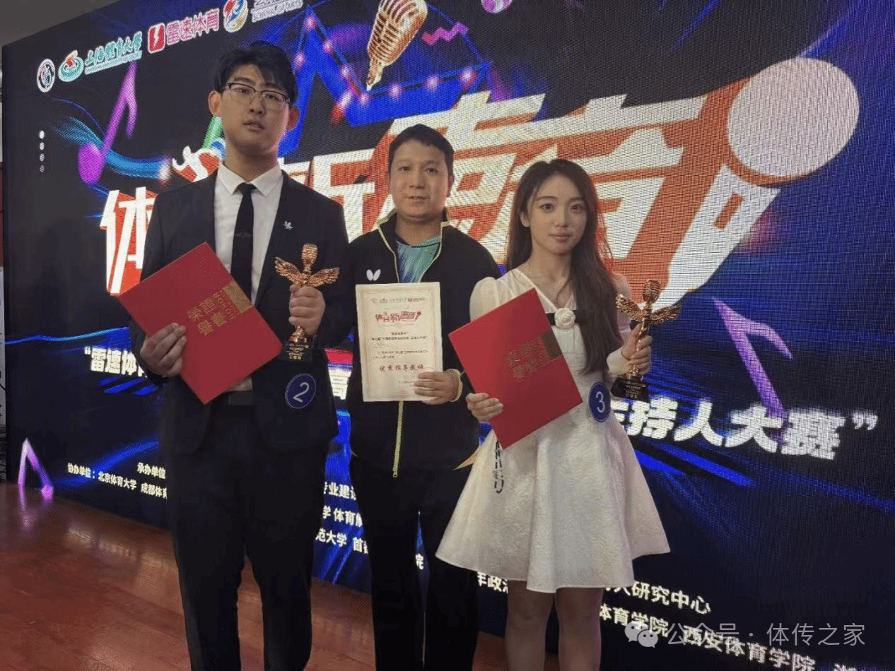面对决赛中多位选手来自北体、上体、中传等国内知名院校的强劲对手,刘一臻同学作为上一届全国二十强选手,不仅顶住压力,积极备战,更是在赛场上突破自我,获得“体育解说赛道全国三等奖”的好成绩。聂诗蕊同学作为24届新生在比赛中表现突出,敢于挑战、自信拼搏,成功闯入决赛并斩获“体育电商赛道全国三等奖”。