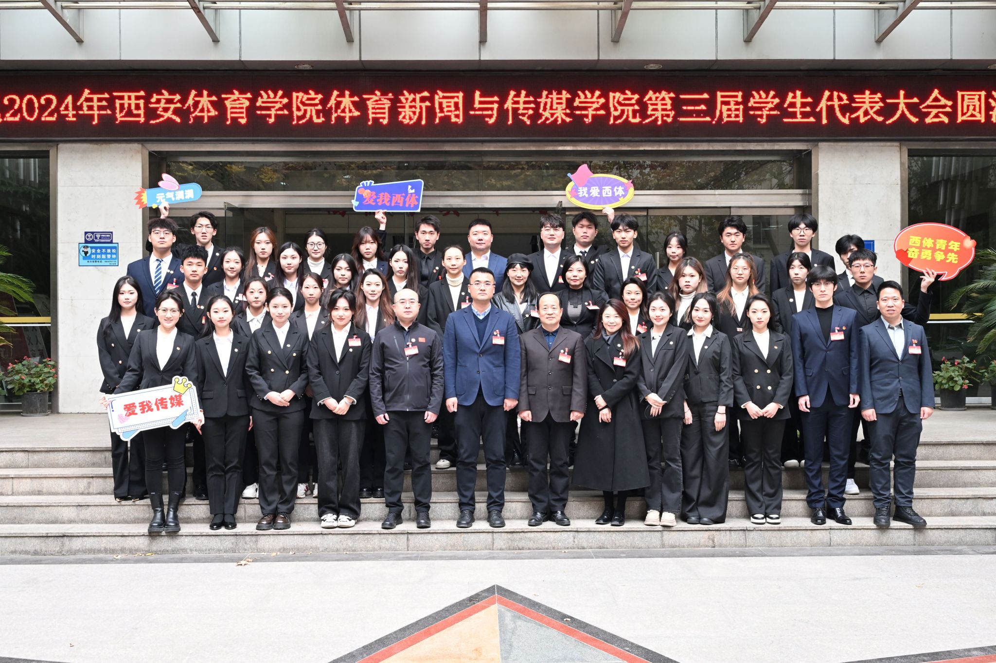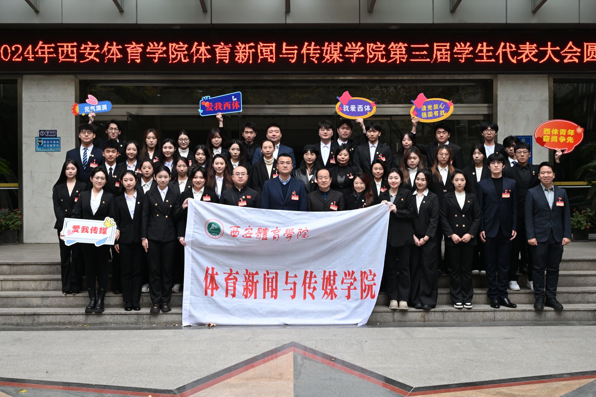 潮平岸阔催人进,凤正扬帆正当时。为高举中国特色社会主义伟大旗帜,深入学习贯彻党的二十大和党的二十届三中全会精神,在建校 70 周年的新起点和全面落实 “十四五”规划、聚力攻坚“双一流”建设目标的新阶段,今年会官方网站体育新闻与传媒学院第三届学生代表大会于12月18日在含光校区教学楼一楼报告厅顺利召开。