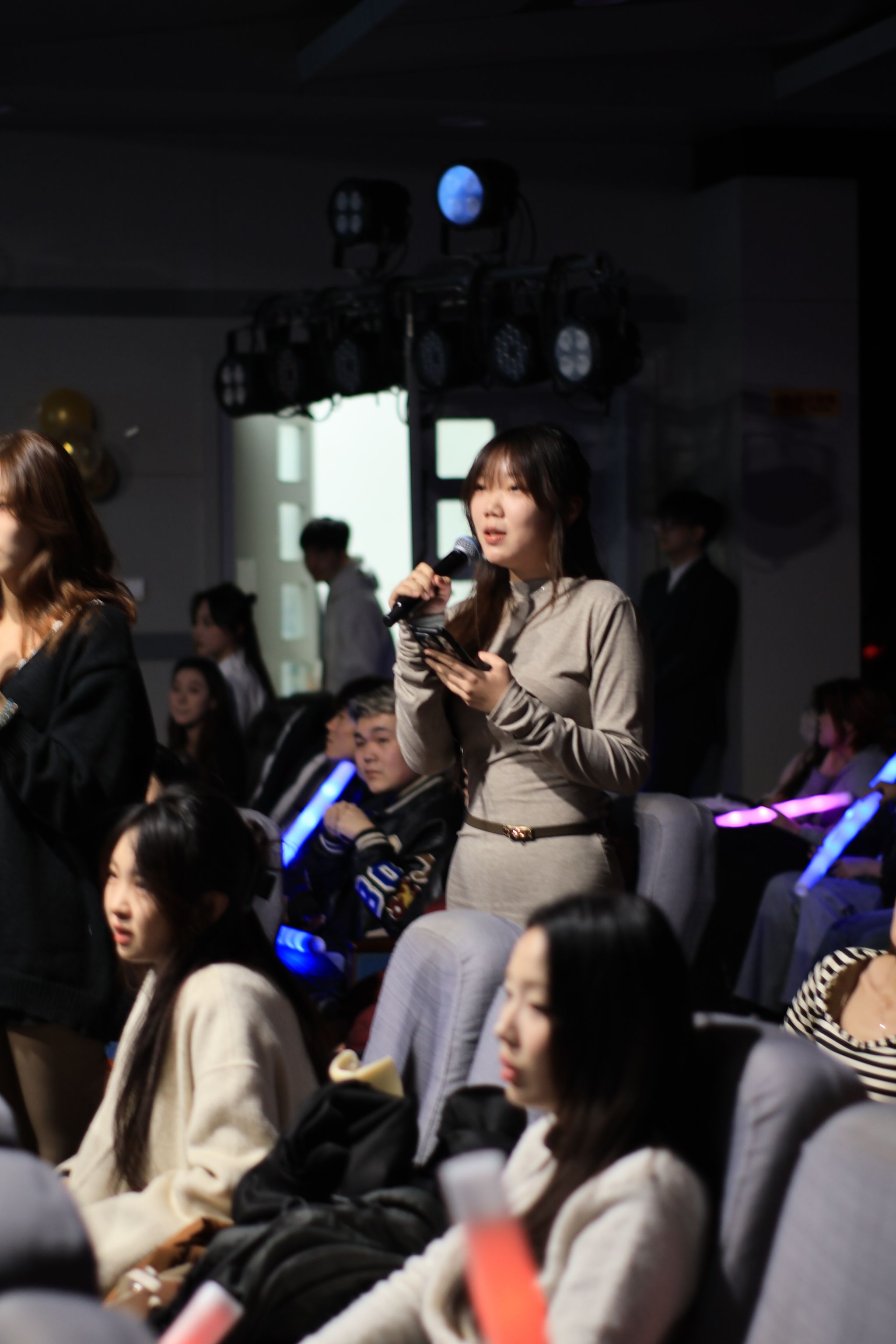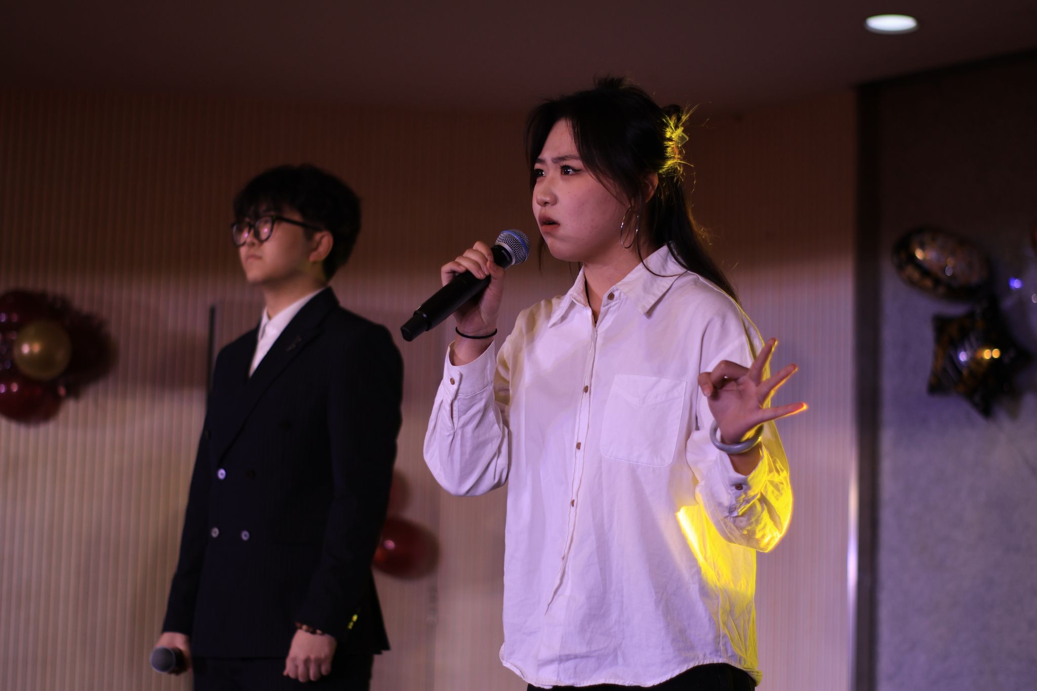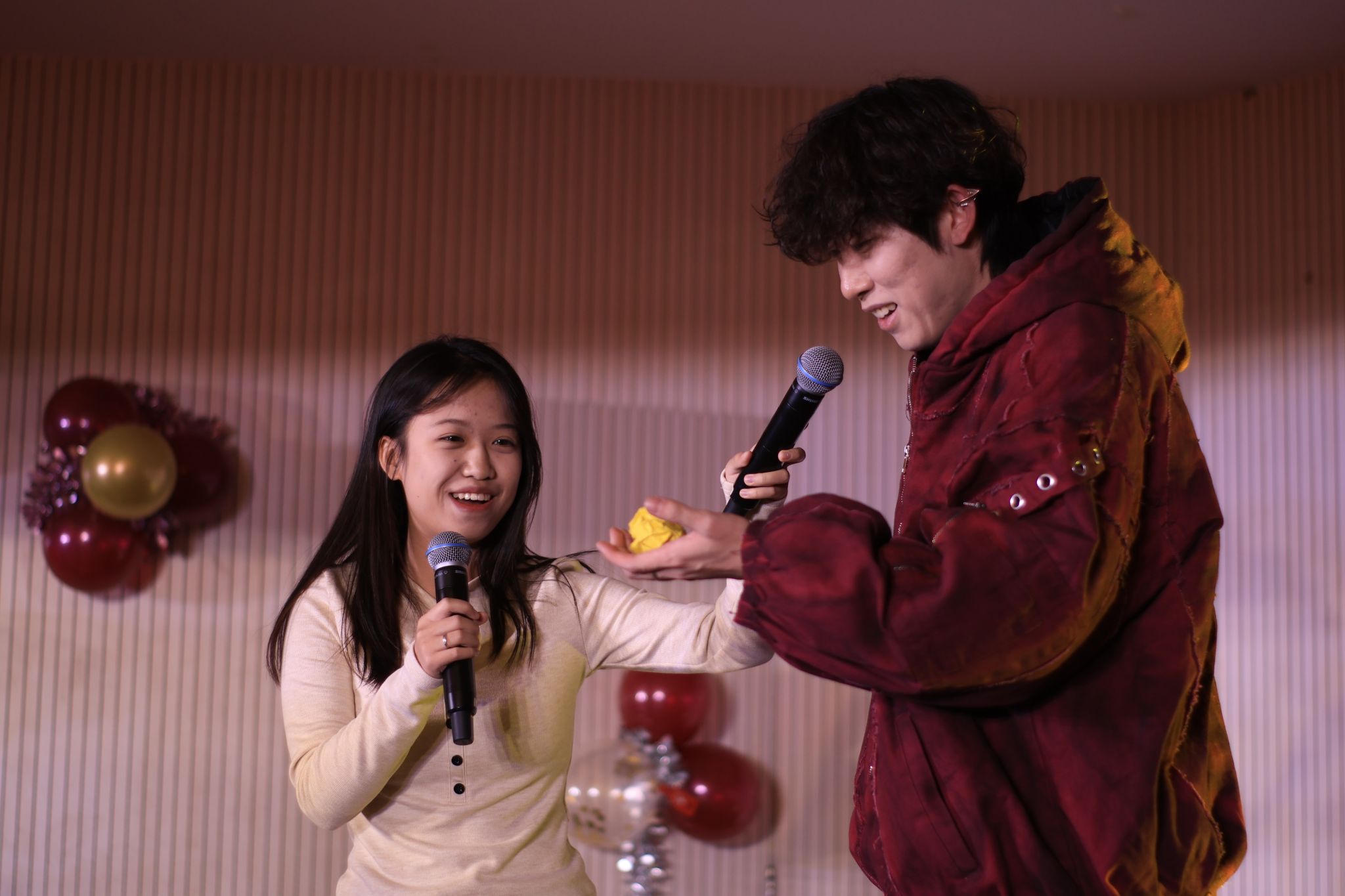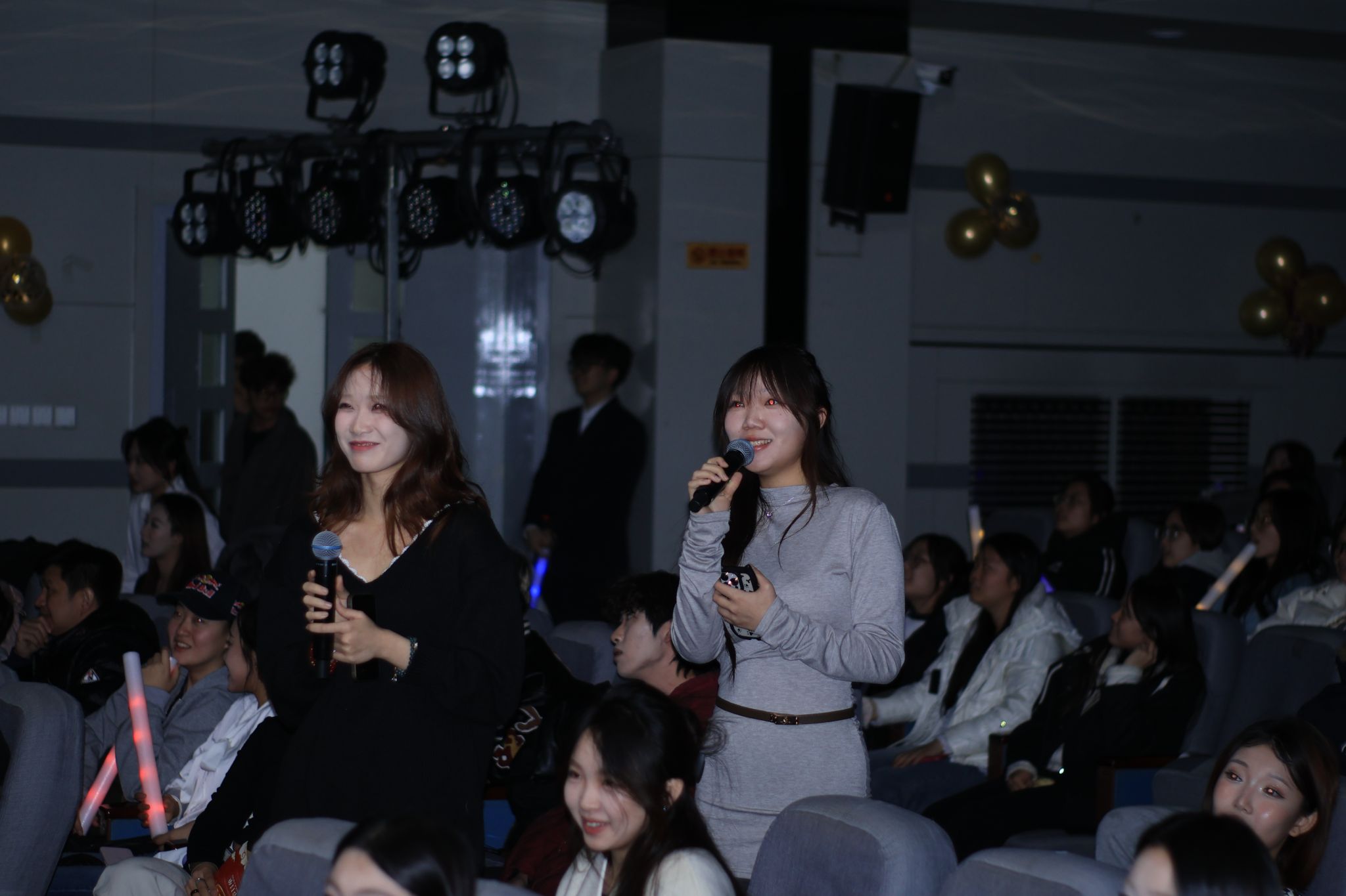 互动游戏“挑战接歌”环节,同学们积极响应,一展歌喉,将晚会气氛推向又一高潮。