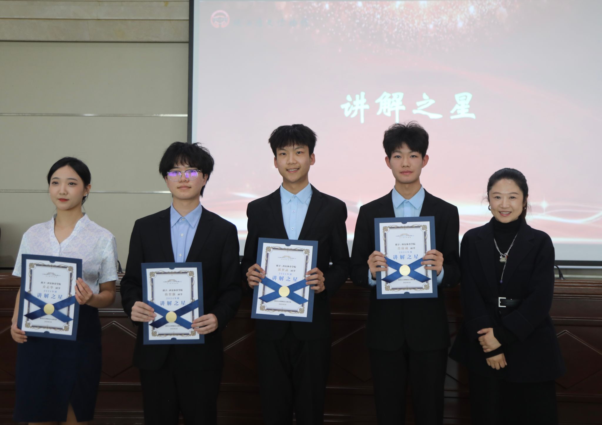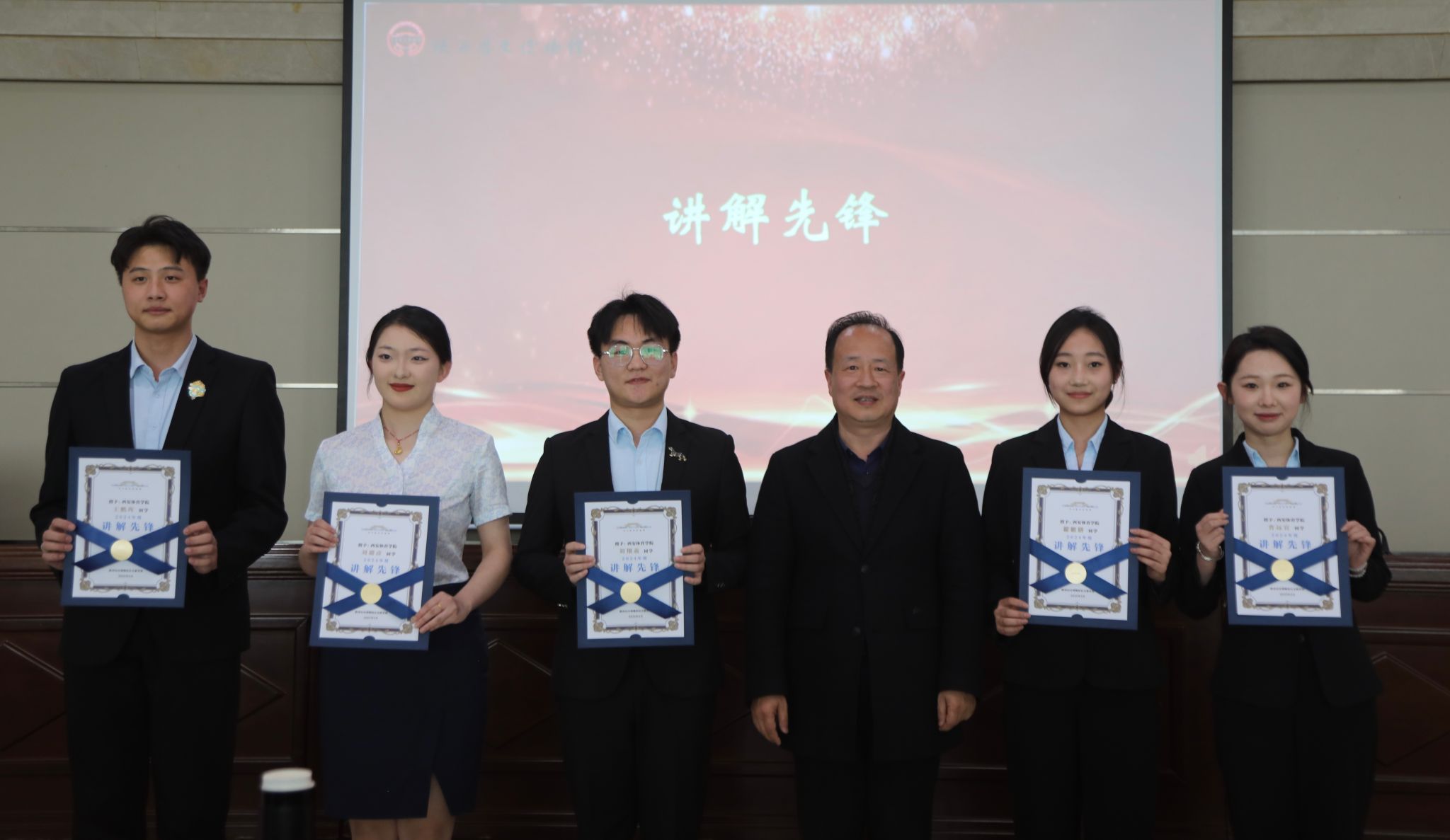 体育新闻与传媒学院党委书记马增强、副院长姚静分别为荣获“讲解先锋”、“讲解之星”的同学颁奖。