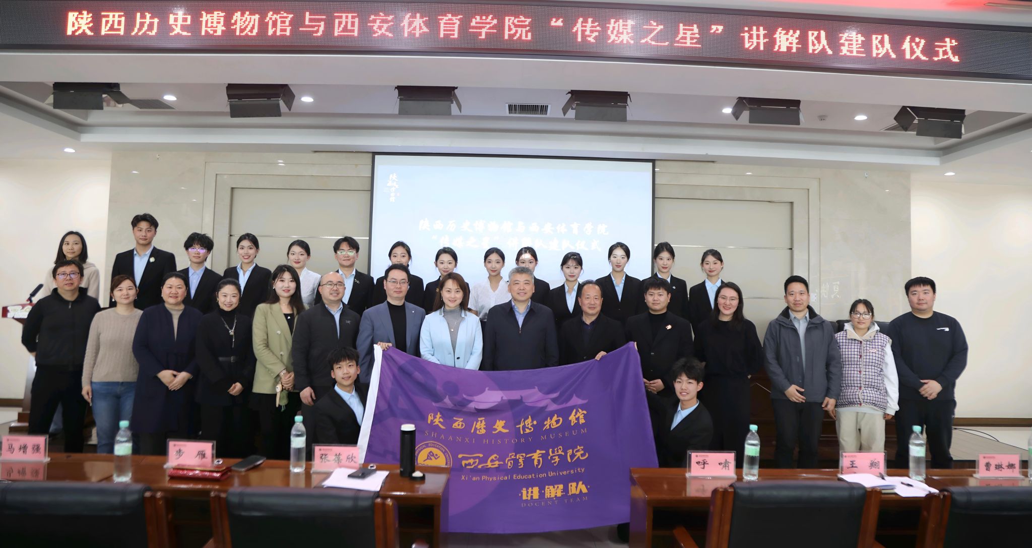副院长王翔对陕历博领导及同仁的莅临致以诚挚谢意。他表示,体育新闻与传媒学院一直致力于培养复合型人才,秉持“镜头会说话,笔下有春秋,口中生妙言,赛场展锋芒”的育人目标,将新闻传播、历史文化与体育特色有机结合。此前已有20余名播音与主持艺术专业学生参与陕历博讲解,累计讲解上万场。此次讲解队的成立,标志着双方合作迈上新台阶,也是文化传承与人才培养深度融合的重要实践。双方将进一步深化合作,在弘扬民族精神、增强文化自信的征程中贡献青春力量。