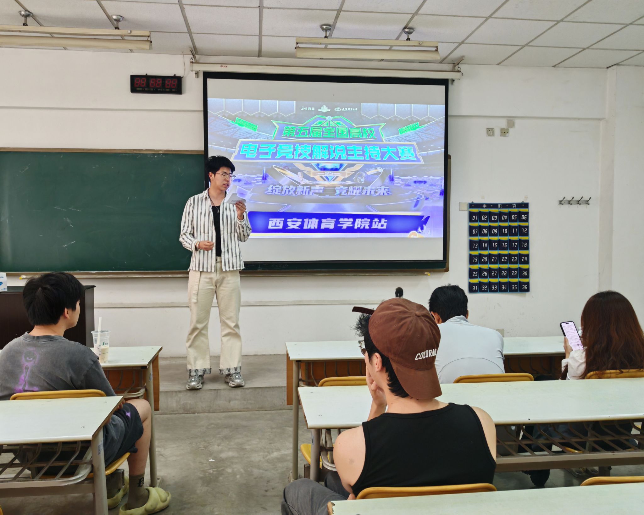 本次大赛采用“高校邀请海选+外卡站海选”相结合的参赛方式。作为受邀高校,今年会站海选赛于4月18日13:00通过腾讯会议线上开赛,并在竞麦教育视频号同步直播。尽管形式为线上海选,选手们仍以声音为剑,以热爱为盾,在虚拟舞台上展开激烈角逐。评委团从语言表达、专业知识储备、临场应变力三大维度严格评审,最终,陈宇航、李卓鹏、聂诗蕊三位选手凭借出色的表现成功晋级。