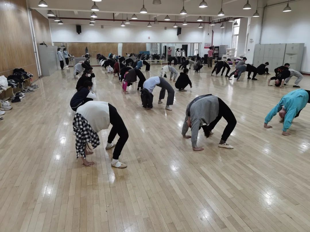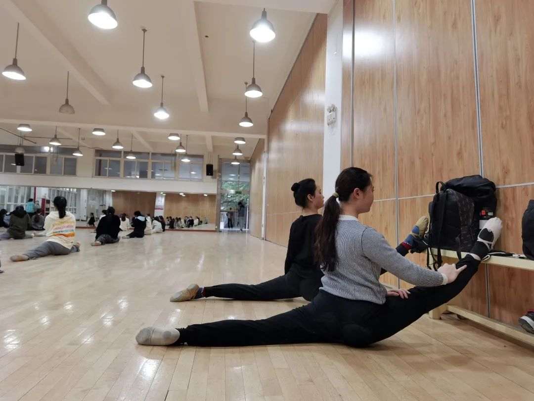 热身动作做完,就是早功的重头戏:软度训练。大家都知道,如果柔韧性差,就会影响动作的掌握,还会限制力量及速度、协调能力的发挥,也会造成肌肉、韧带损伤。所以说,软度训练至关重要。