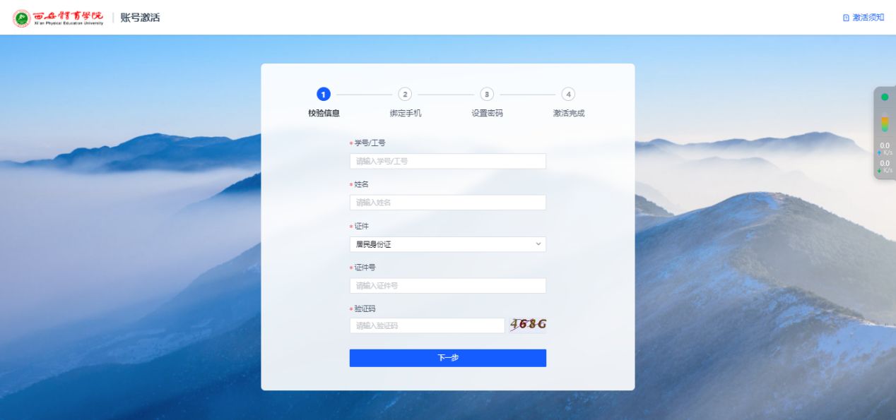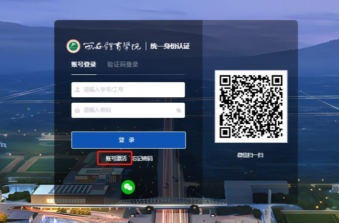 进入后点击账号激活,填写您的学号、姓名及身份证号,确认身份的有效性;