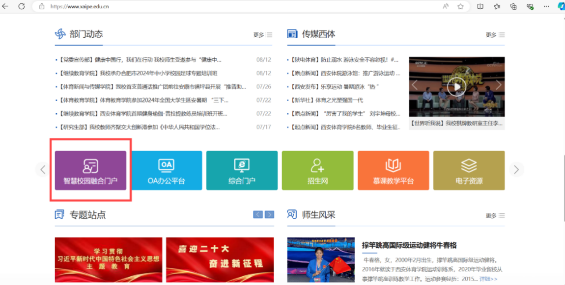 电脑端下拉滚动条找到智慧校园融合门户,点击进入。