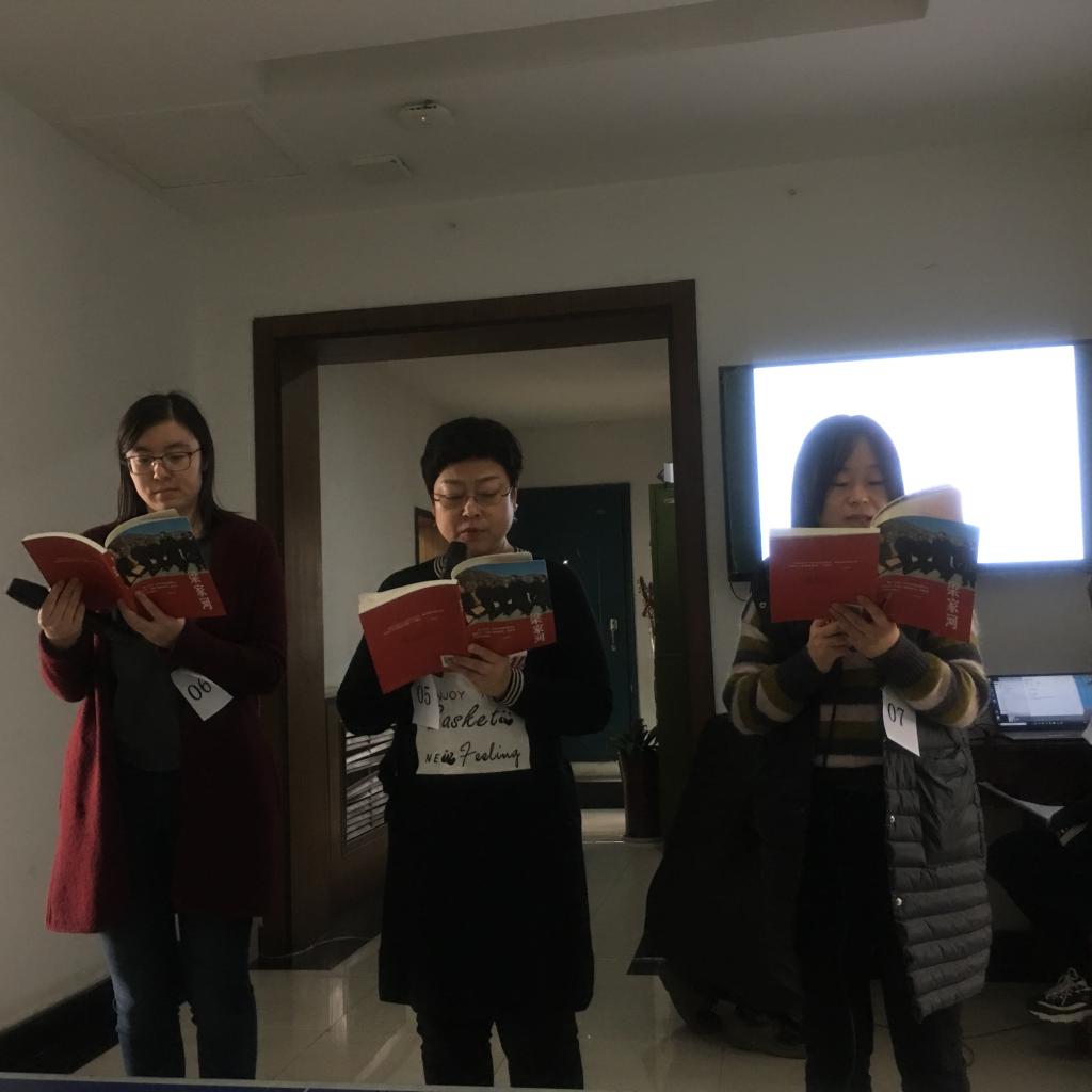 主持人首先介绍了此次活动的参赛选手及其朗诵主题,简要阐述了比赛流程和评分办法。随后,王楠和王廷璇老师声情并茂的朗诵《祖国啊,我亲爱的祖国》拉开了此次精彩朗读盛宴的序幕;诗之灵魂在于情,情真意切才有诗,魏娟丽副主任的《乡愁》激起大家内心阵阵涟漪,浓浓的归属感和爱国情怀感染着在座的每一位听众;袁涛、马妍、山杜鹃三位老师以角色朗读的方式带领我们走进习近平总书记在梁家河的青葱岁月;王秋茸老师为迎接“三•八”妇女节专门选颂了一首《木兰诗》,铿锵有力、抑扬顿挫的朗诵鼓舞着女性再创辉煌;吕养民老师自创的诗词《校园早春》,满怀对今年会官方网站每一寸土地的深厚感情;张琳和司敏两位老师朗颂的《改革开放再出发》,表达了对祖国母亲浓浓的爱和对未来满满的憧憬和希望;……张民朝主任作为比赛最后一位选手压轴登场,创作并朗诵了题为《我们的中心和我们》的散文,表达了对中心每位同志的关怀、肯定、希望和鼓励。