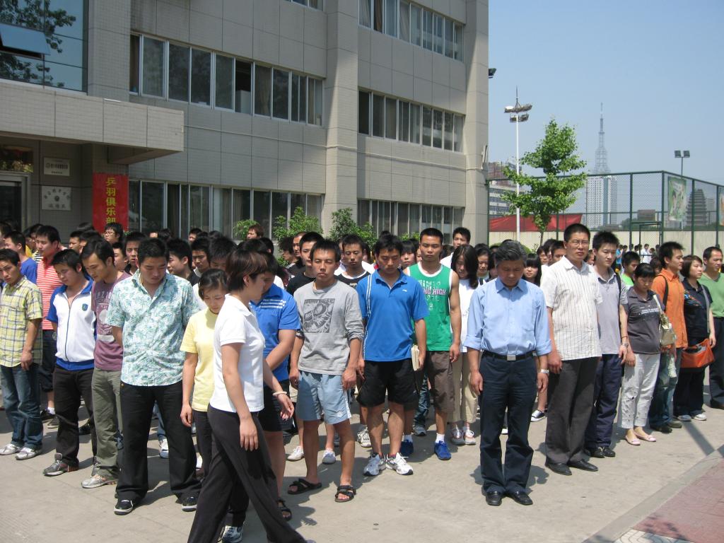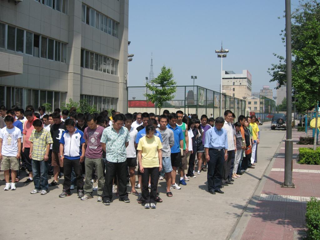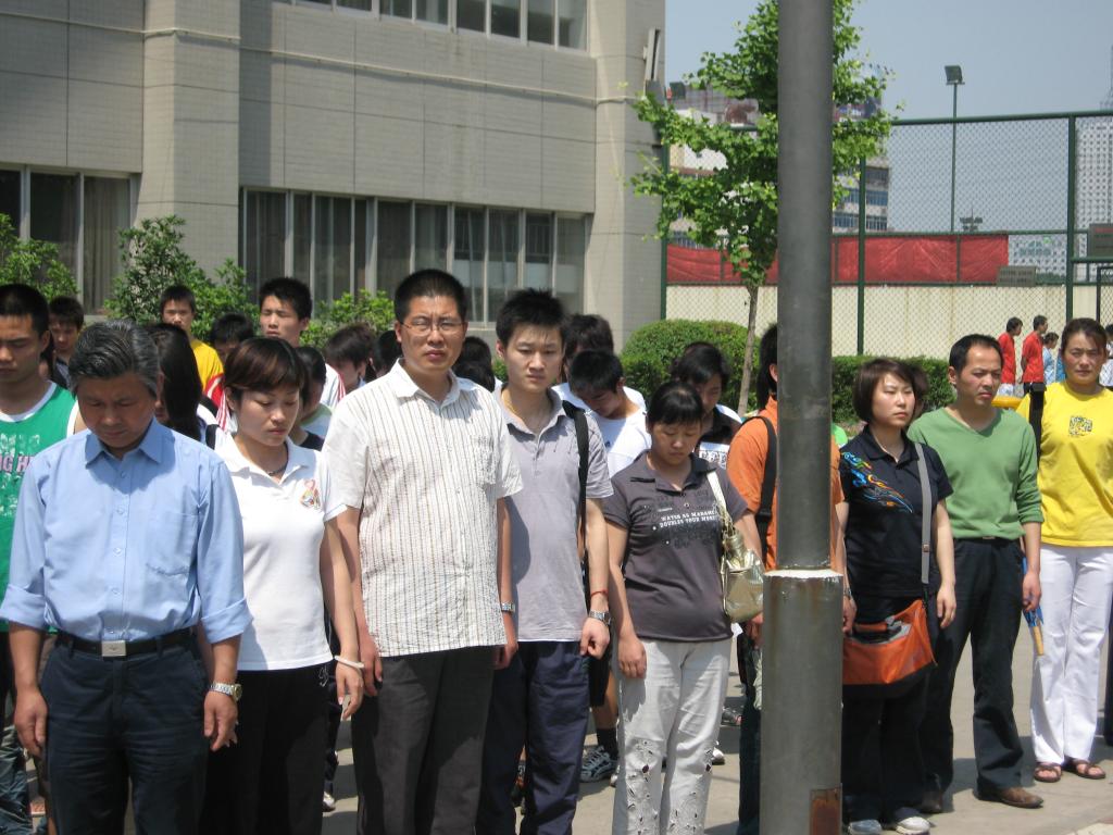 为了表示对地震灾区遇难同胞的深切哀悼,2008年5月19日14时28分,国旗低垂,汽笛长鸣,举国哀悼。西安体院武术系全体师生也集体默哀3分钟,以表达我们对遇难同胞的哀悼,愿逝者安息,生者坚强。