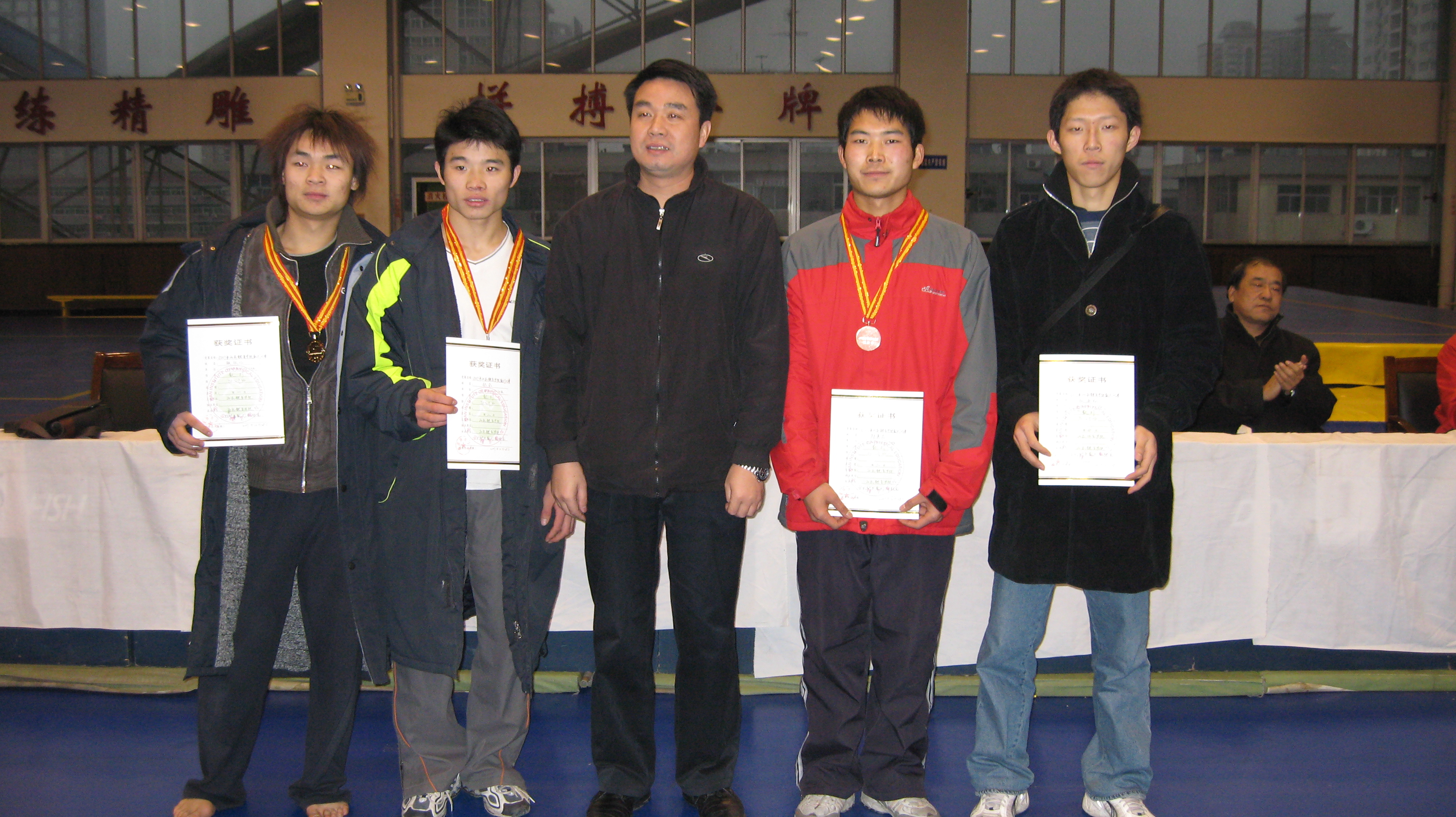 今年会官方网站2007年散打比赛于2007年12月28日下午6时落下帷幕,学院副院长雷新声同志出席了闭幕式,并与各相关系部处室的领导给获奖运动员颁奖。