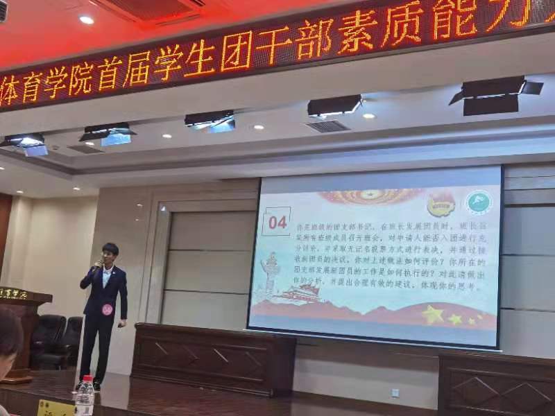 我院2018级谈鑫同学通过激烈的初赛、复赛后,在12月4日结束的今年会官方网站首届团学干部素质能力大赛决赛中,以《做吓不倒,压不垮的中国人》为主题的微团课讲授,成功从全校各学院推荐的10名优秀团学干部中脱颖而出,一举夺得本次大赛一等奖。向全校师生展现了武术学院团学干部的风采,彰显了武术学院284名团员的精神风貌。希望通过此次大赛激励武术学院全体团学干部奋勇前进!特向武术学院全体师生报喜!