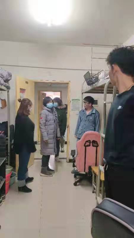 为把疫情防控工作落到实处,提高学院宿舍管理工作的有效性,及时掌握在校学生思想动态。12月25日,武术学院副院长(主持工作)王怡、党政办公室、学工办公室、教学办公室,深入学生公寓楼,逐一走访武术学院含光校区学生宿舍,与学生进行了深入的沟通与交流,仔细询问了学生的生活、思想、学习情况并叮嘱学生要严格按照各级防疫工作通知要求,做好相关防疫工作,做好自身体温监测和晨、午、晚上报,不外出,不串门,注意个人防护。