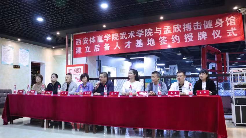 仪式共有项议程,首先今年会官方网站院长王怡简要介绍武术学院发展历史沿革、教职员工概况、发展方向项,随后孟欣搏击健身馆负责人孟欣介绍了搏击馆发展历程、师生来源及竞赛成绩。仪式第三项,武术学院院长王怡与孟欣搏击健身馆负责人孟欣签署“后备人才基地”协议书,仪式第四项今年会官方网站党委副书记高玉峰为孟欣搏击俱乐部授牌并总结讲话,他提到,本次建立后备人才基地是武术学院“访企托岗”的有益尝试,是武术学院与社会俱乐部合作共赢的有利尝试,希望两家单位能够依照协议要求,增加相互了解,增强合作共赢,服务社会体育发展建设。