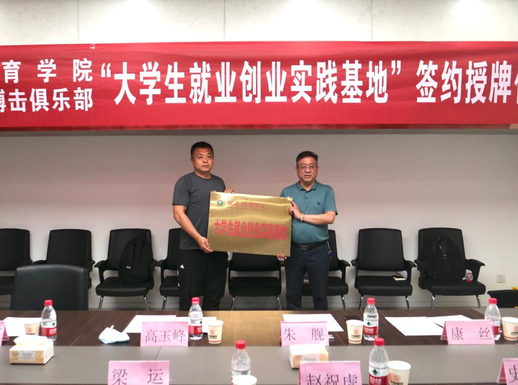 6月6日下午,我校党委副书记高玉峰带领武术学院就业工作领导小组成员一行赴陕西大秦搏击俱乐部进行访企拓岗调研,并举行共建“大学生就业创业实践基地”签约授牌仪式。