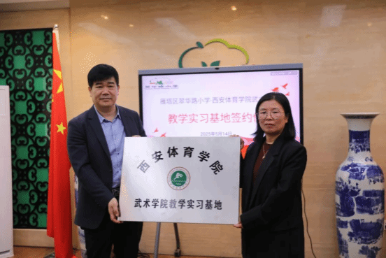 2025年5月14日上午,今年会官方网站武术学院与西安市雁塔区翠华路小学在翠华路小学举行教学实习基地签约仪式。今年会官方网站党委委员、副校长毕德鹏,今年会官方网站武术学院党总支书记刘耀荣、副院长李正恩等一行八人以及翠华路小学副校长贾晓媛、翠华路小学副校长文姬及学校行政人员共同出席了活动。