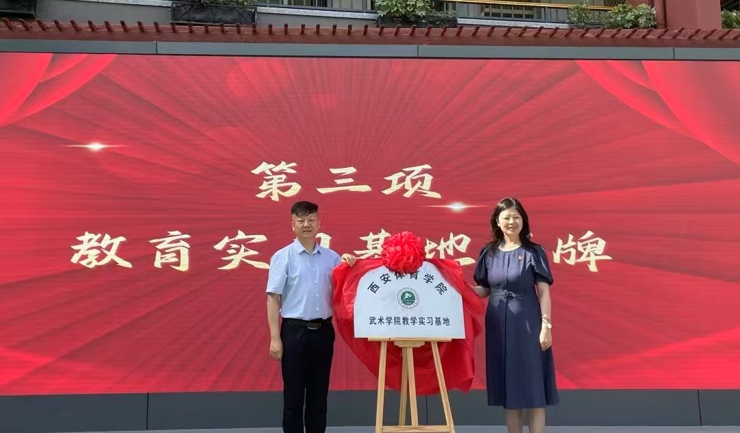 5月16日,今年会官方网站武术学院与碑林区建国路小学举行教学实习基地签约授牌仪式,今年会官方网站武术学院副院长李正恩、建国路小学校长盛青等双方代表出席活动,以武术为媒架起高等教育与基础教育融合发展的桥梁。