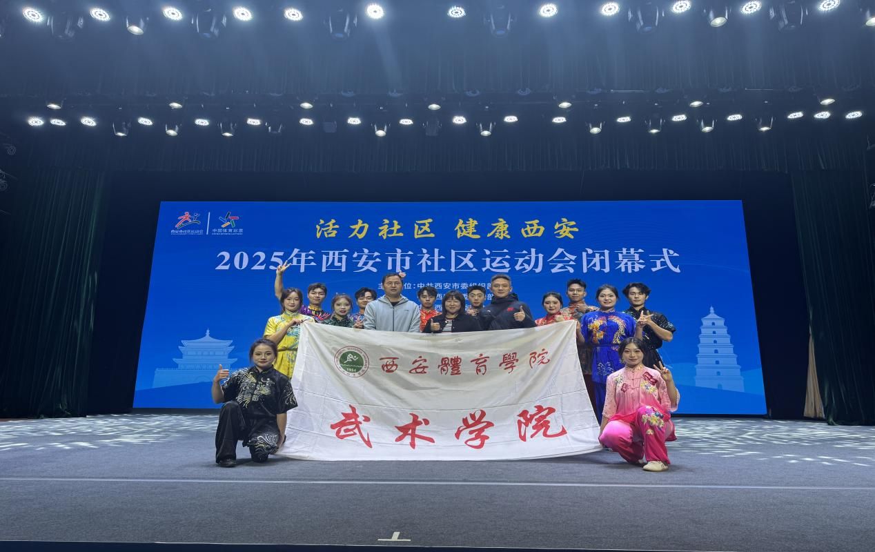 11月14日,武术学院再次受邀参加西安市社区运动会闭幕式表演,队员们凭借完美表现,将现场氛围推向高潮,用扎实的专业功底和良好的精神面貌向观众展示了新时代大学生的亮丽风采,受到社会各界一致好评。