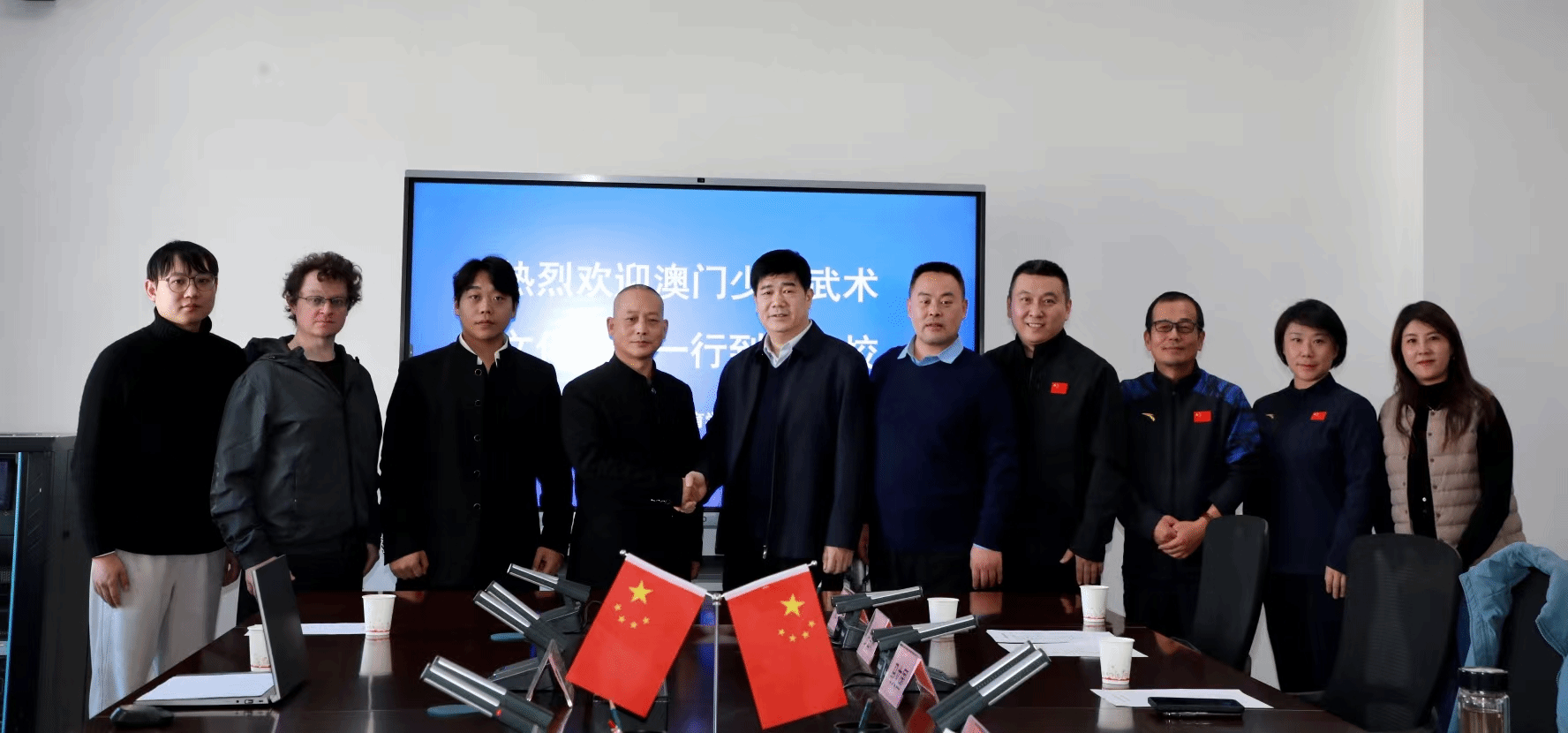 2026年1月8日,澳门少林武术文化协会会长曹文亭、理事长曹源一行莅临我校开展武术交流活动。我校副校长毕德鹏、武术学院院长袁金宝、套路教研室主任罗雪琳、马文国教授、国际交流与合作处全体人员共同参会。