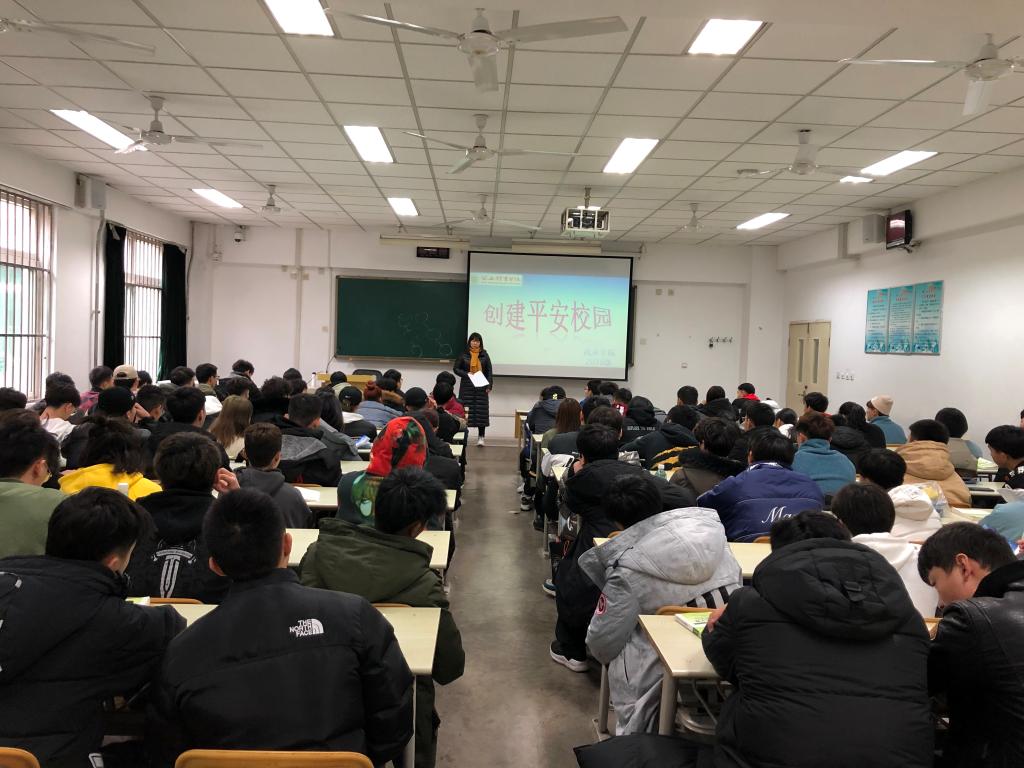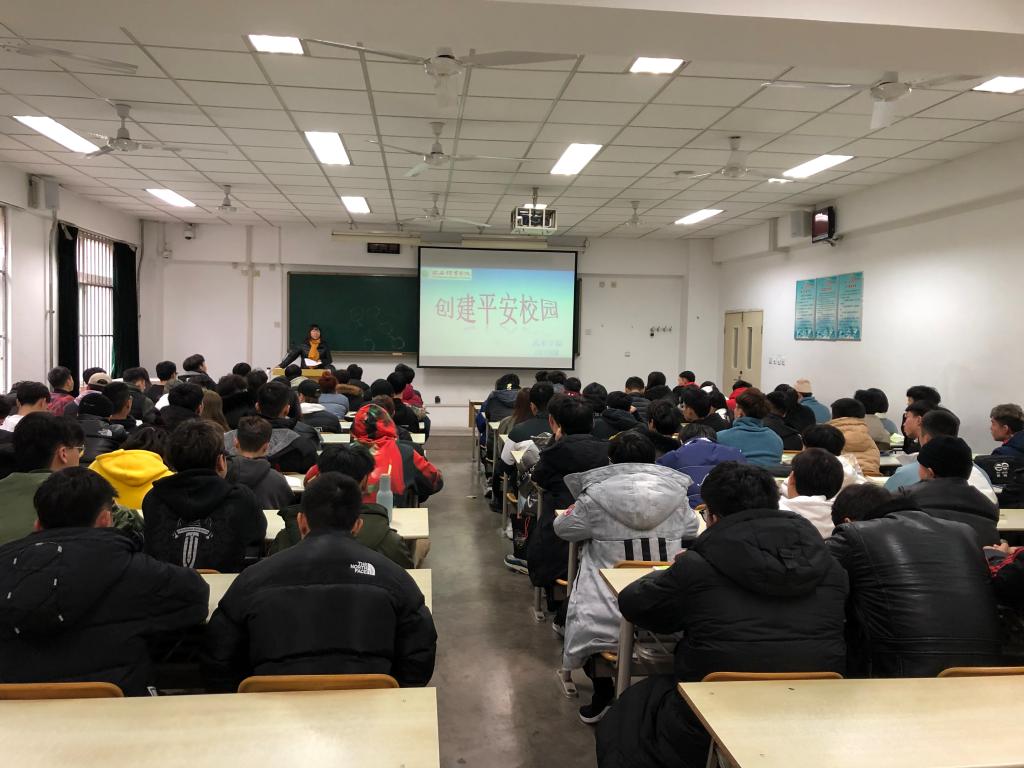 今年会官方网站“平安校园”检查验收动员大会于11月25日下午召开,为了落实好大会精神,顺利迎接创建检查验收,武术学院19级于2019年11月26日中午在103教室举办了“创建平安校园 你我共参与”的主题年级大会。会议由辅导员王华老师主持,辅导员赵佳鹏老师参加。