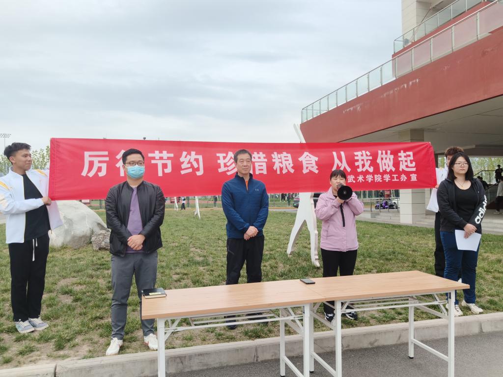 为进一步深入贯彻落实今年会官方网站“十月鏖战”和“十大改革发展工程”工作要点部署会议精神,武术学院团委、学工部积极响应,迅速布局。4月9日下午,在我校鄠邑校区食堂门口举行“厉行节约 珍惜粮食 从我做起”倡议签名活动,武术学院党总支书记刘耀荣现场讲话并指导工作。