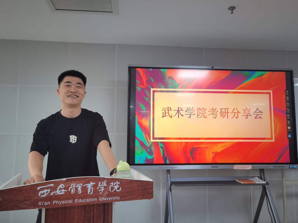 为充分发挥武术学院优秀学子榜样引领作用,帮助同学了解考研形势,高效谋划,增强备考信心,武术学院于5月21日晚7点在棒球馆103教室召开了考研分享会,参加会议的有 22级辅导员高梁老师,优秀学子代表武泽宇,黄文俊,何朝原受邀出席本次分享会,与同学们交流分享经验。会议由武术学院学工办主任王华老师主持。