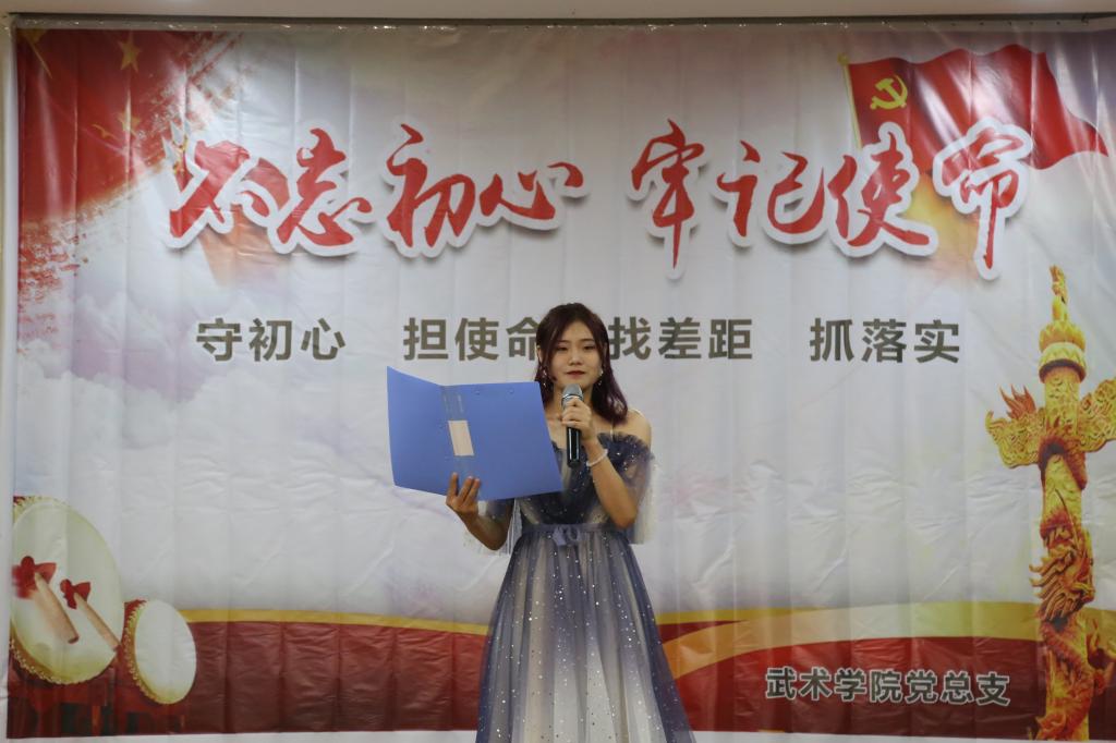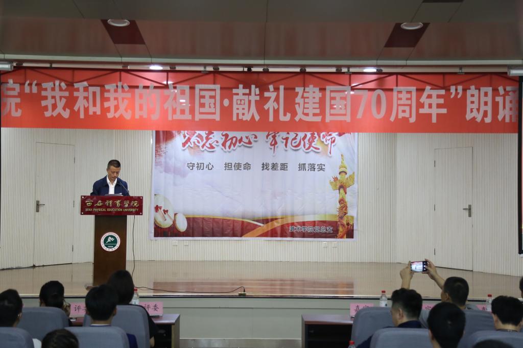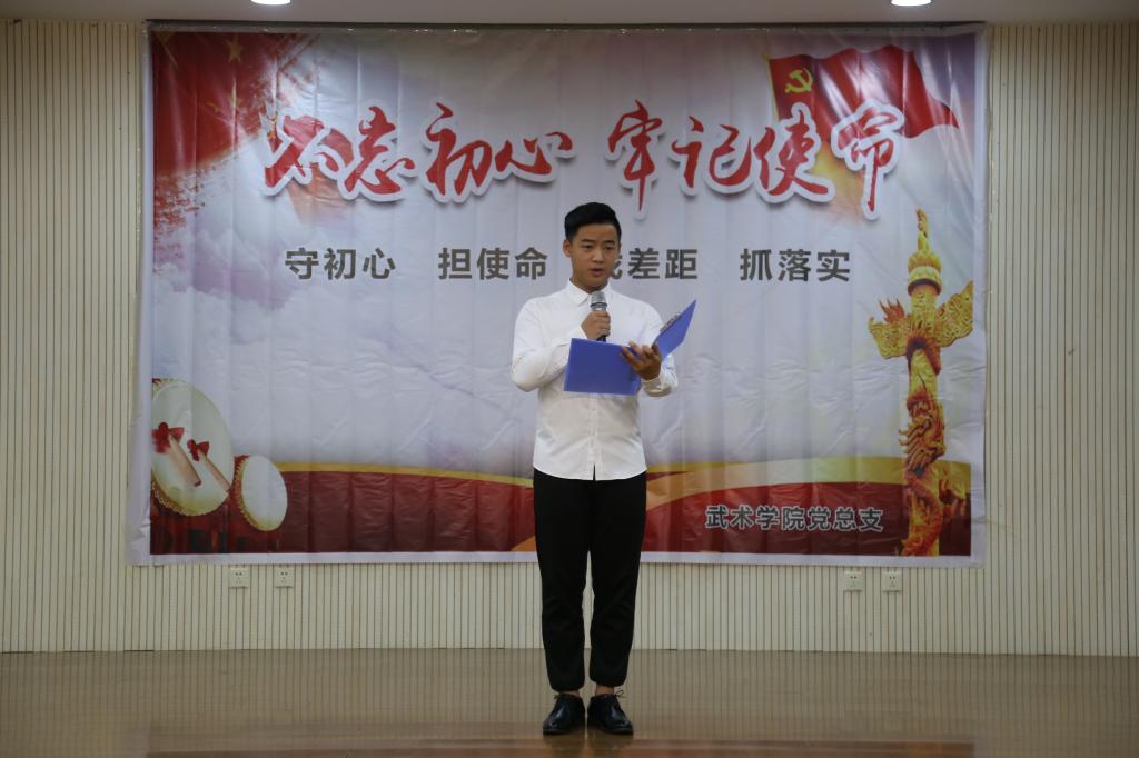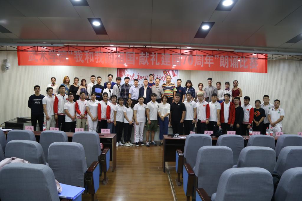 9月27日中午,由武术学院党总支、学生会联合主办的“不忘初心,牢记使命”暨“我和我的祖国·献礼建国70周年”诗歌朗诵比赛在新教学楼一楼报告厅举行。武术学院党总支书记朱舰、校党委宣传部副部长杨柳、校团委书记熊辉、校团委副书记王红霞、武术学院副院长袁金宝、武术学院各教研室党支部书记、教师、辅导员以及三百余名学生参加了本次活动。