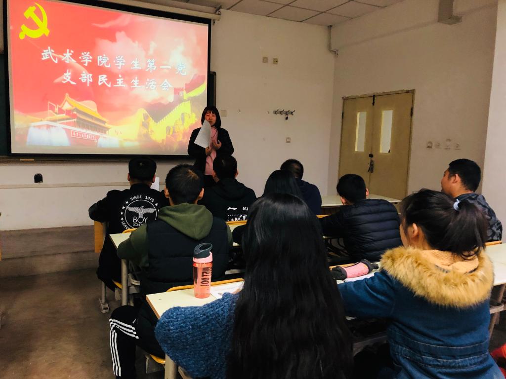 2019年10月29日,武术学院学生第一党支部在教学楼103教室组织召开了民主生活会,支部书记王华主持会议。