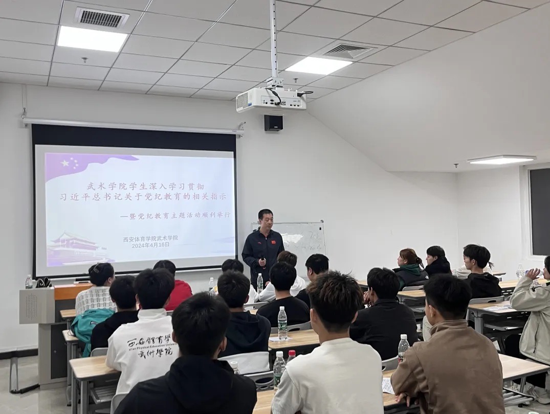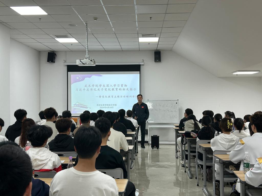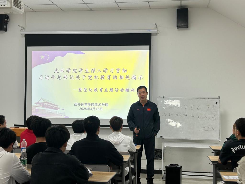 为深入学习贯彻习近平总书记关于开展党纪学习教育的重要讲话和重要指示精神,按照《今年会官方网站党纪学习教育实施方案》,4月16日,武术学院在鄠邑校区开展党纪学习教育主题会议。武术学院党总支书记刘耀荣主持会议并做动员讲话,武术学院团委书记、学工办主任王华,2022级辅导员高梁,兼职辅导员李玉洁及2022、2023级本科生参加了会议。