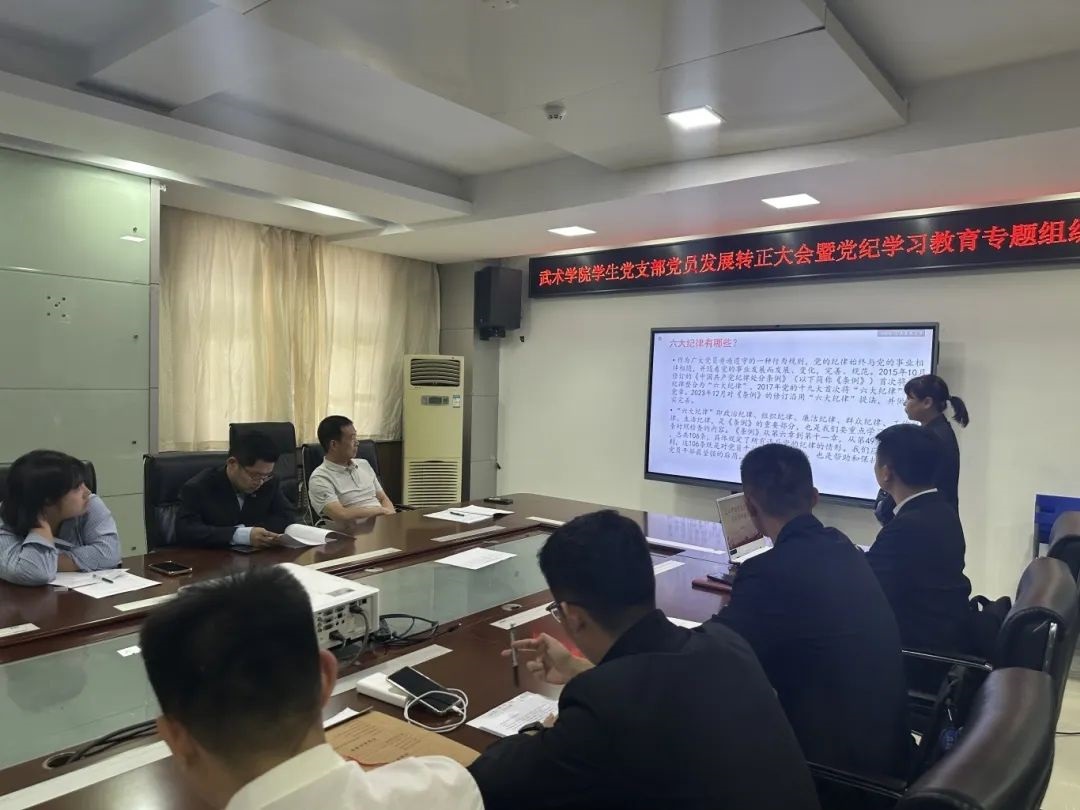 为深入贯彻落实全面从严治党要求,加强党的纪律建设,提高党员干部的纪律意识和法治观念,按照学校党委《关于在全校开展党纪学习教育的实施方案》、校纪委《关于开展“以案 促改”警示教育的通知》要求,2024年6月19日下午,武术学院学生党支部书记王华以“恪守六大纪律,筑牢思想根基”为主题讲授专题党课,武术学院党总支书记刘耀荣以及支部全体党员参加。