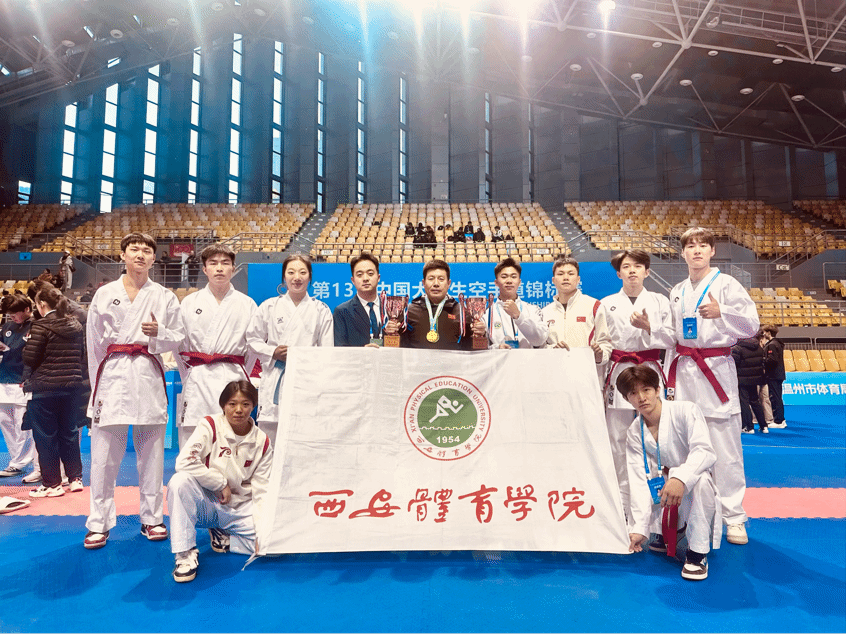 第13届中国大学生空手道锦标赛于11月24日—11月29日在浙江省温州市永嘉县体育馆隆重举行,有来自全国78所高校的教练员、运动员近八百余人参加了此次比赛。我校空手道代表队在马波教授的带领下,历经五天激烈紧张的比赛,不畏对手、顽强拼搏,荣获1金3铜的骄人成绩。