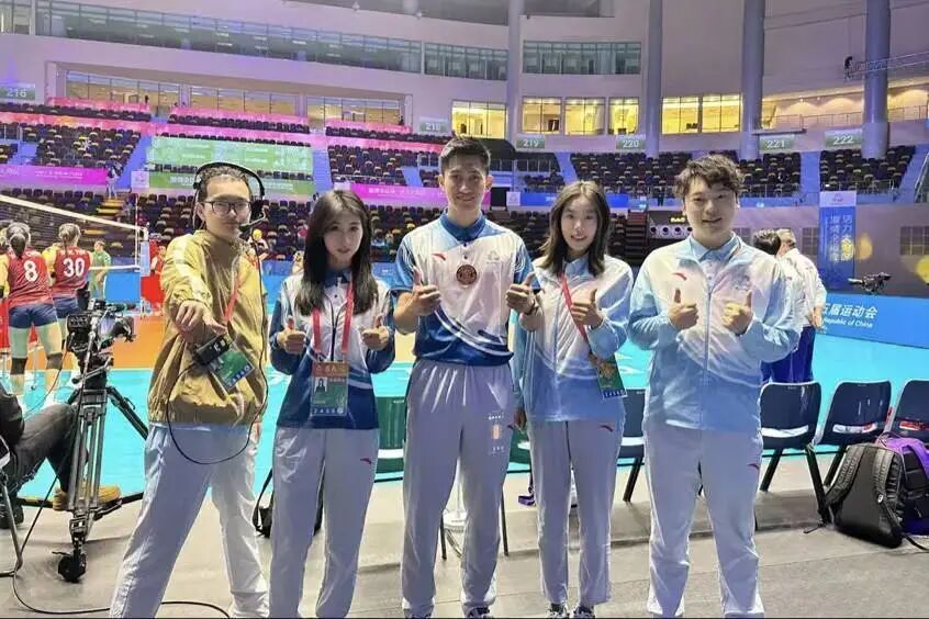 在第十五届全运会期间,我校27名播音与主持艺术专业学生在广州、深圳、澳门等赛区参与15个大项、24个小项的体育展示工作,累计执行3500余场次,圆满完成226场颁奖仪式,展现了扎实的专业素养与高度的责任担当。