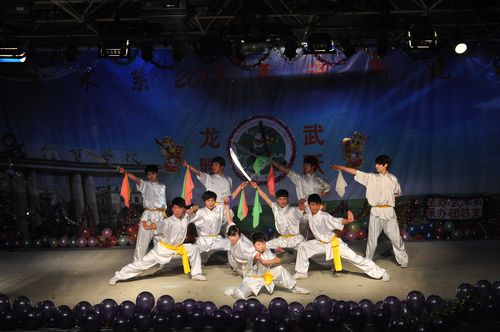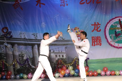 喜庆洋洋的舞狮表演拉开了晚会的序幕。在武术系主任马文国发表了热情洋溢的新年贺词后,节目演出正式开始。
