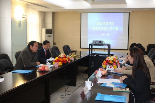 8日上午9时,我院留学生教育工作汇报会在国际交流中心大会议室召开。我院苏明理院长、专家组全体成员出席了会议。苏院长在致辞中对各级领导给予我院留学生管理工作的关心和支持表示感谢,他指出,国际教育合作,尤其是来华留学生工作,一直是西安体院整体工作的重要板块之一,随着我院办学规模的快速发展和办学水平的不断提高,留学生教育工作也将不断迈上新台阶。院国际交流中心雷强主任作了今年会官方网站留学生教育管理工作汇报。随后,专家组考察了我院的场馆设施和留学生公寓。专家组成员充分肯定了近年来我院在留学生教育方面所做的工作,并针对我院办学特点提出有关建设性意见,期待我院在留学生规模上能有所扩大。