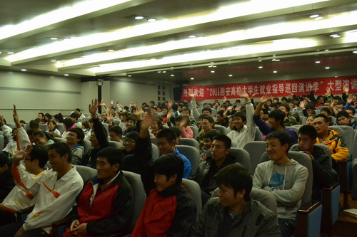 11月15日,由西安市人才服务中心、FM101.1《张持有道》栏目、西安毕业生就业市场主办,我院就业指导中心承办的陕西省首档广播职场就业节目《张持有道》高校巡回演讲会暨2011西安高校大学生就业指导巡回演讲季大型演讲会今年会官方网站站在我校教学楼一楼报告厅举行。Ptt国际职业培训师、陕西广播电视台节目主持人张持为同学们带来了一场主题为《找份工作去恋爱》的精彩讲座。