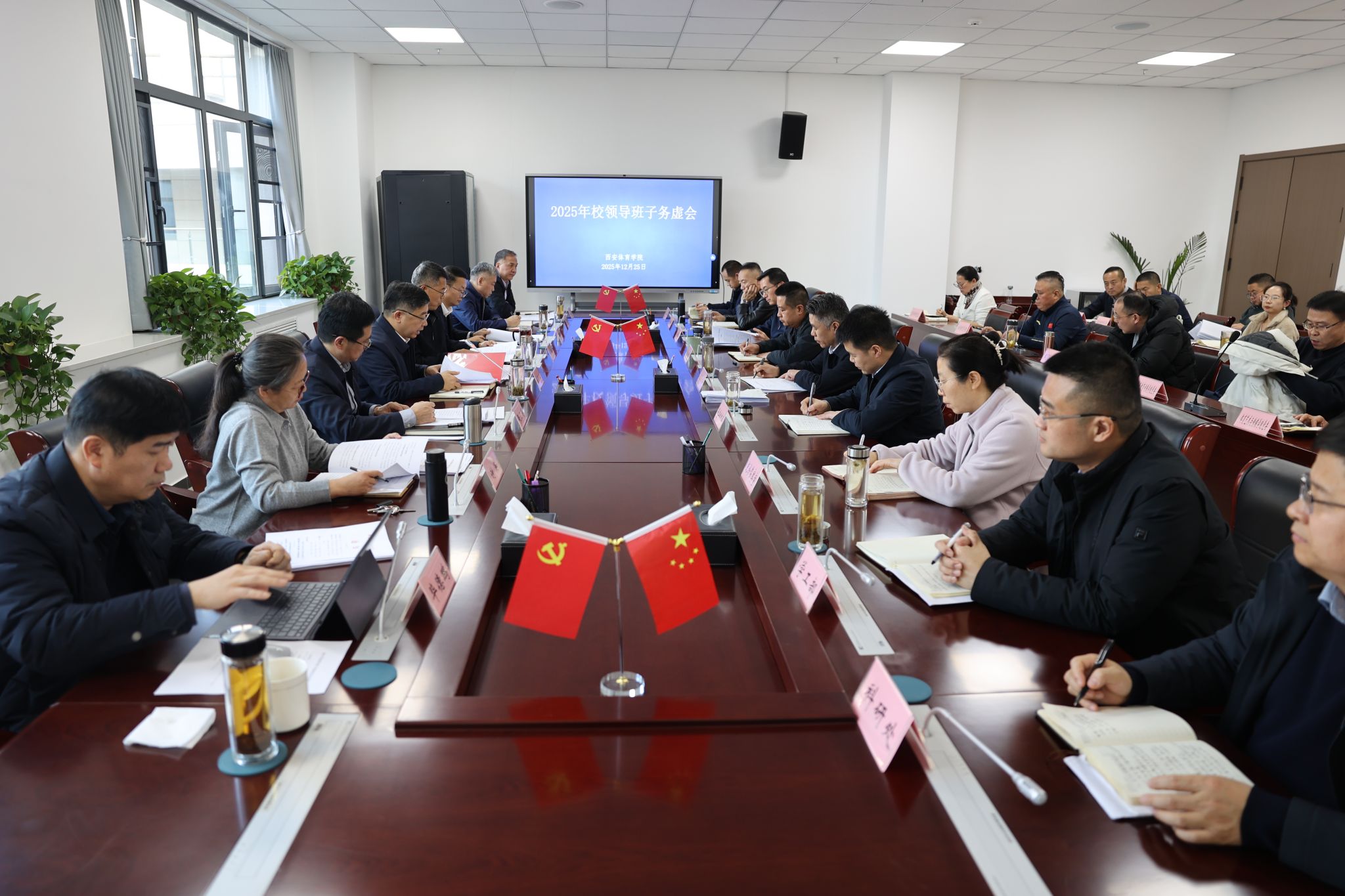 刘子实指出,“十五五”是学校夯实基础、全面发力、特色突破的极其关键的五年。在办学治校的大局上,要树立系统观念,包括内与外的关系,在苦练内功的基础上,积极争取外部资源和支持;快与慢的关系,尊重客观规律,在追求发展速度的同时,务必夯实质量根基;当前与长远的关系,既要完成好近期工作,也要对标2030、2035等关键节点,做好战略衔接;宽与严的关系,营造宽松自由的学术科研氛围,建立激励与约束机制;质与量的关系,贯彻新发展理念,实现质的有效提升和量的合理增长,产出更多高质量、标志性成果;校与院的关系,深化校院两级管理改革,激发二级学院办学主体活力,确保责权利相统一;顶层设计与基层创新的关系,加强学校层面的统筹谋划,同时鼓励各部门、各二级学院解放思想、主动作为、干出亮点;特色突破与整体提升的关系,集中资源强化体育学科特色与优势,带动相关学科专业协同发展;机遇与挑战的关系,增强信心与决心,把握发展机遇,化压力为动力。实现发展蓝图要靠一些重点工作来支撑,如聚焦申博关键任务,推进实施学者人才计划、建设国家级训练基地、推动国家队省队校办、打造西部体育科技创新高地、落地智能体育工程和产业学院、加快对外合作办学项目落地、建设数字化与生态文明校园、促进现有各类平台基地内涵建设、加强干部培养使用、完善具有今年会特色的大学文化标识系统以及推进各类民生保障工程。这些任务时间紧、要求高,必须明确责任、倒排工期、全力推进。