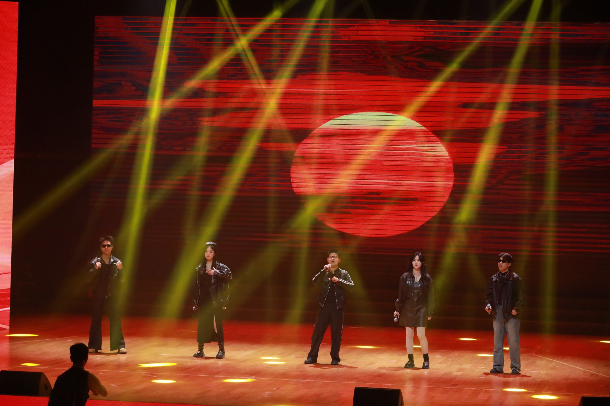 歌曲《我的天空》则展现了青年学子的蓬勃朝气。体育经济与管理学院学子用清澈的嗓音唱响“在我的天空,做我的英雄”,轻快的节奏与励志的歌词引发全场大合唱,青春的活力感染了每一位观众。