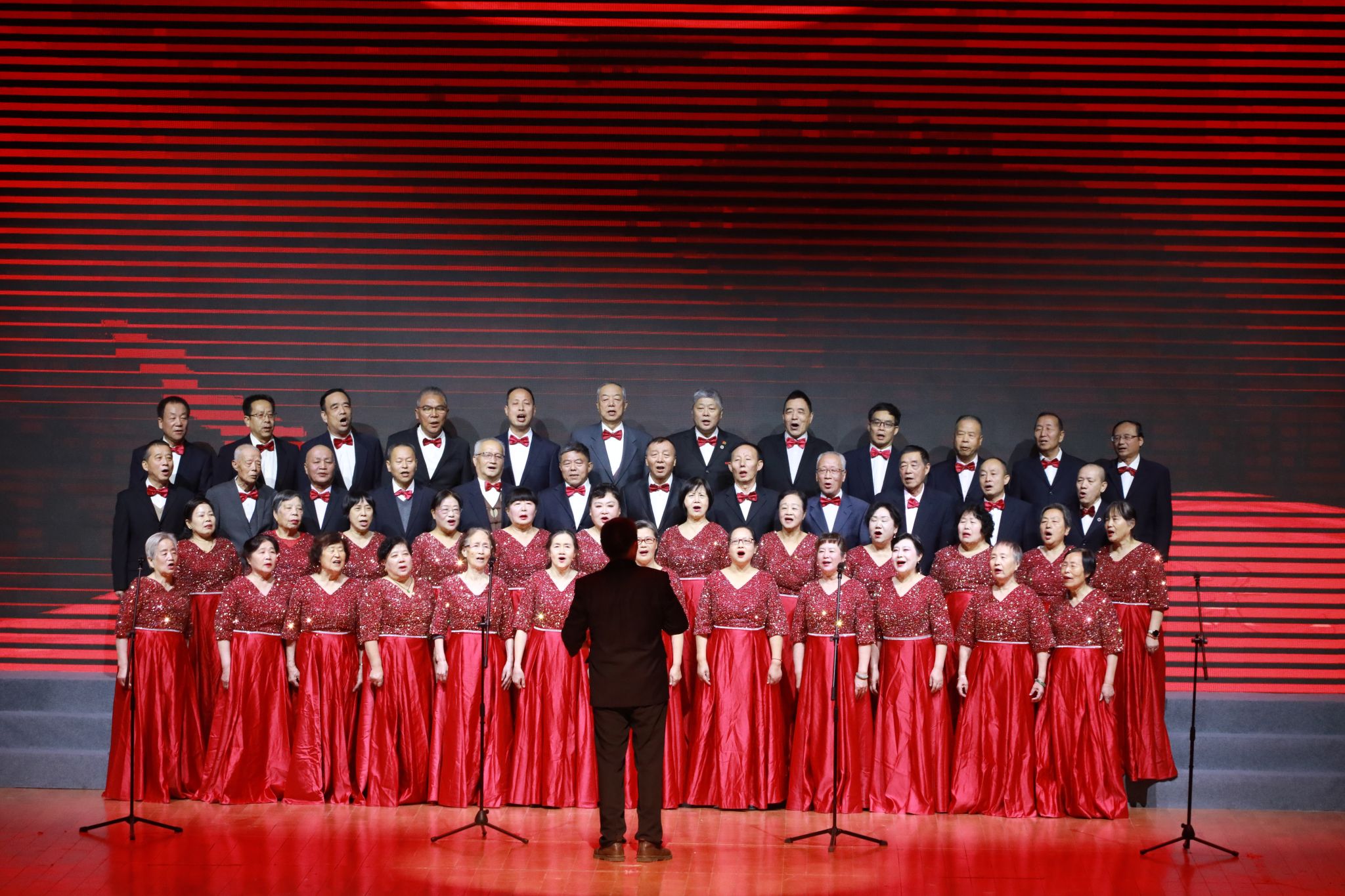 本次晚会在离退休教职工代表合唱的《我和我的祖国》中拉开帷幕。他们中年龄最长者已经九十二岁高龄,沧桑而深情的歌声回顾了他们在今年会的峥嵘岁月。